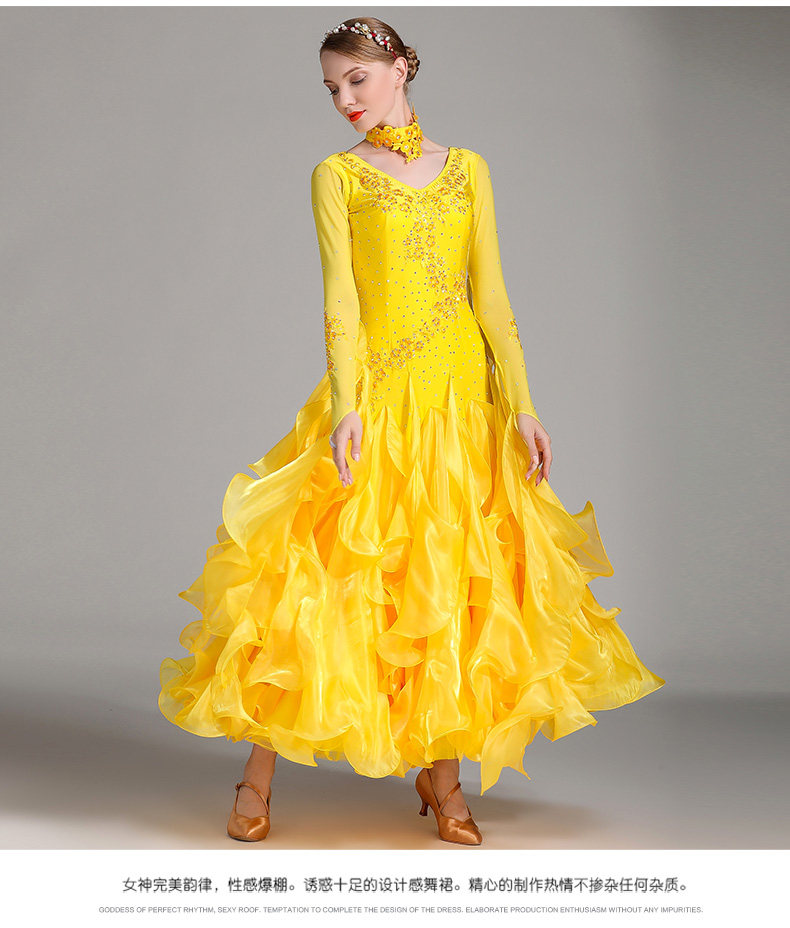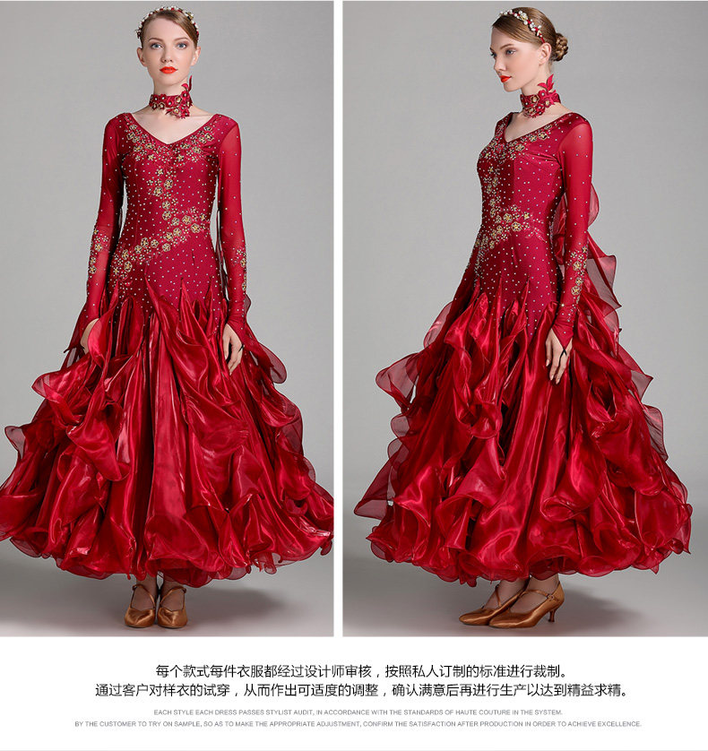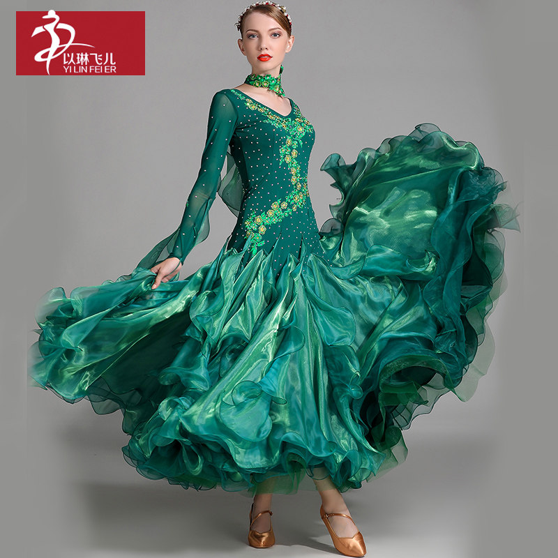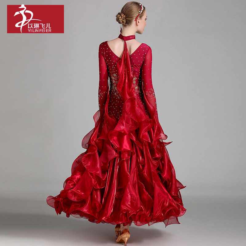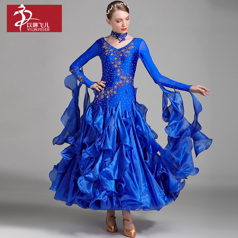 以琳飞儿 Новая современная танцевальная юбка Служба Служба национальной стандартной танцевальной юбки S7001 Служба службы конкурса Diamond Service Service