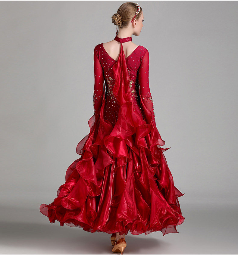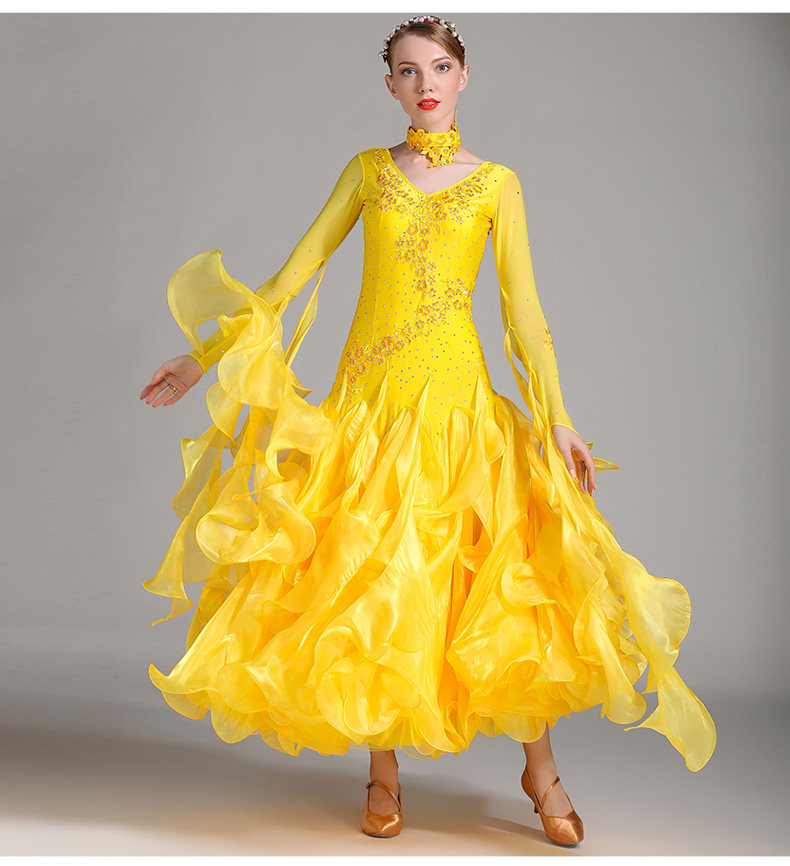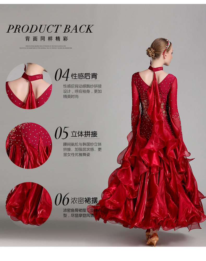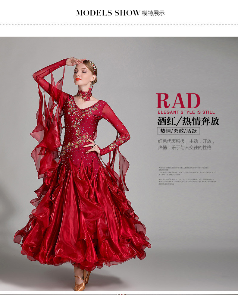 以琳飞儿 Новая современная танцевальная юбка Служба Служба национальной стандартной танцевальной юбки S7001 Служба службы конкурса Diamond Service Service