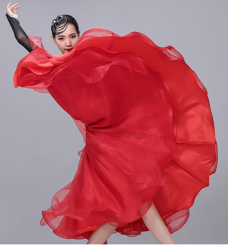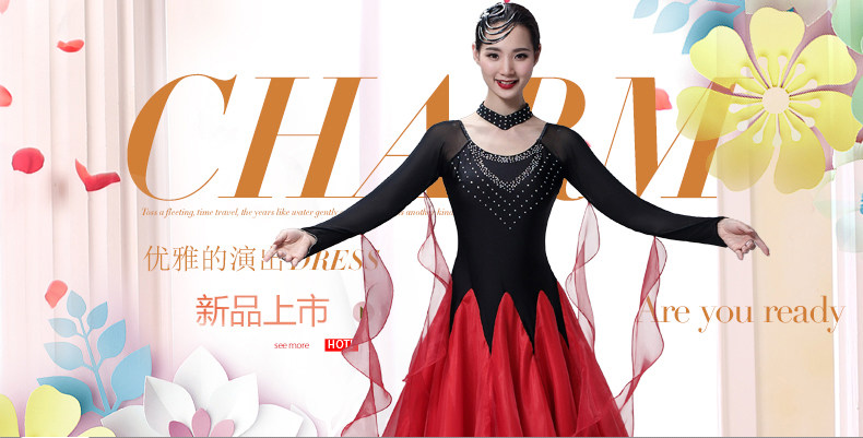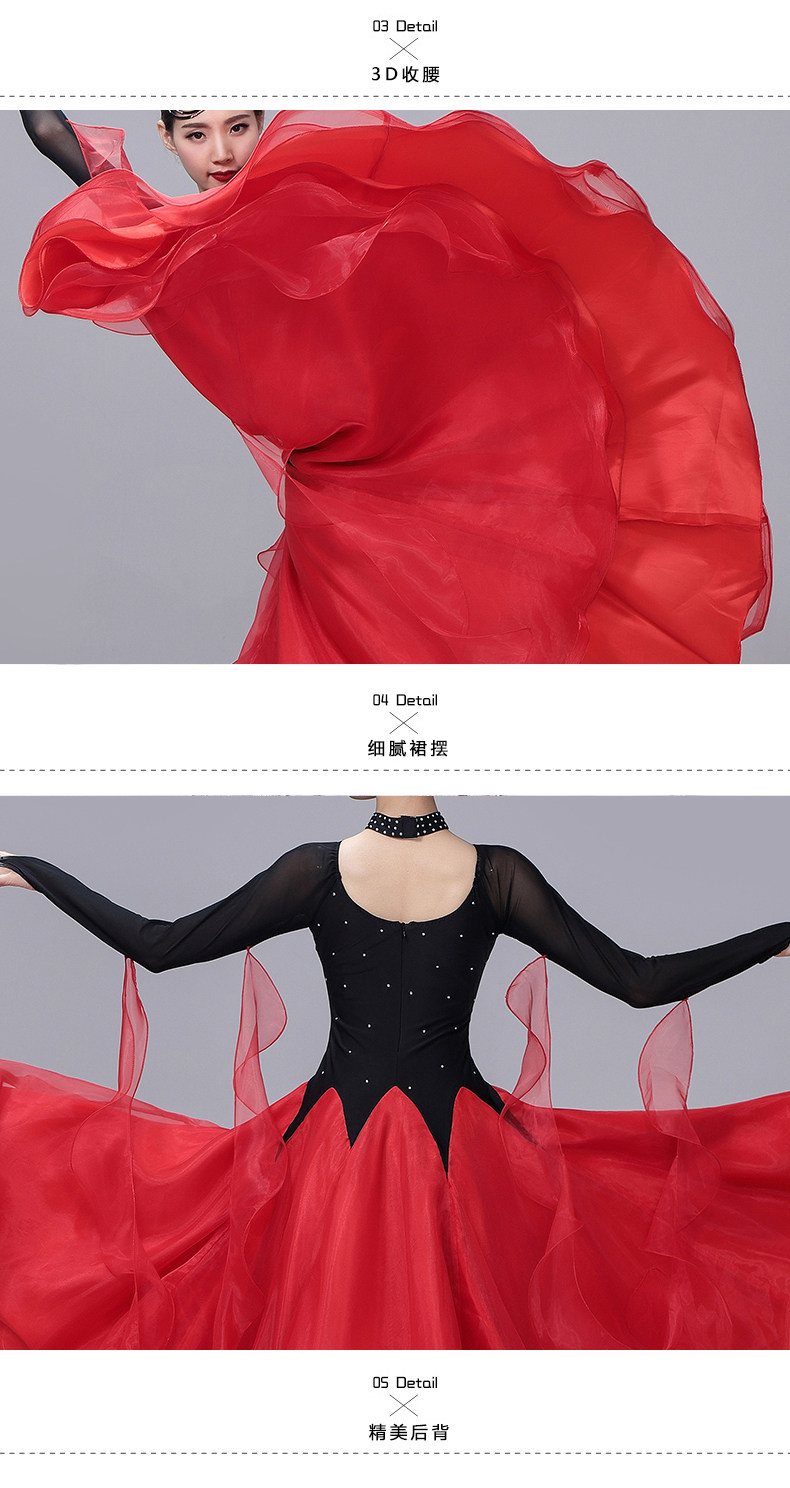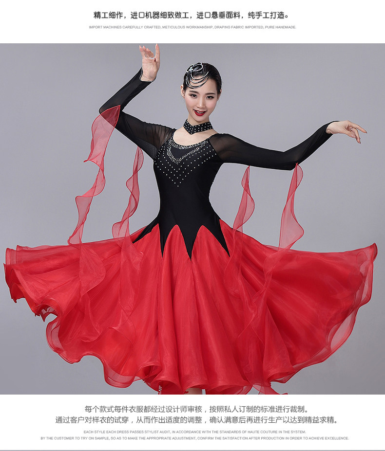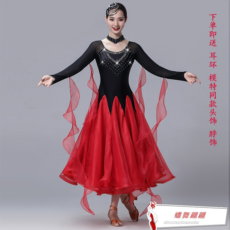 Новая современная танцевальная юбка актриса сервер Performance Server Waltz State Malph Dance Dance Skirt Sware High -End Diamond Drill