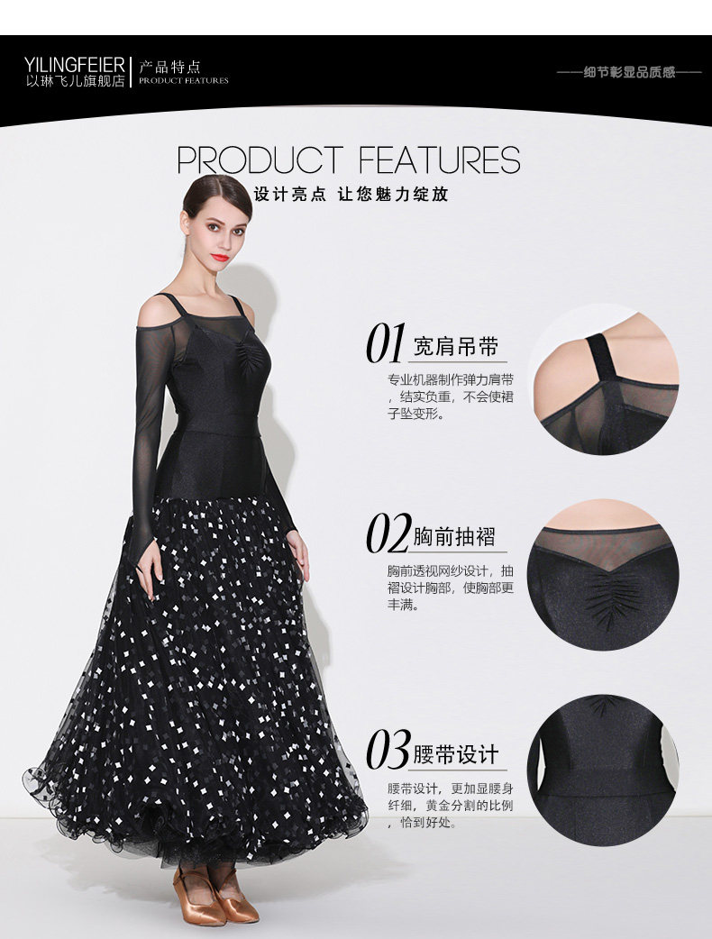 Прозрачный клиренс новая современная танцевальная юбка Yilin Feier S7030 Национальная стандартная танцевальная одежда платья.