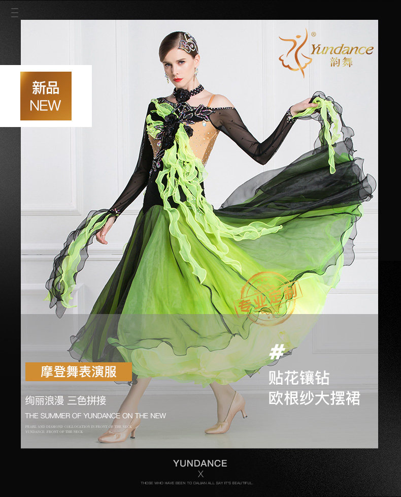 Yundance Rhyme Dance New National Standard Standard Modern Dance Competition Table Saturances, платья и танцевальные танцы Walz