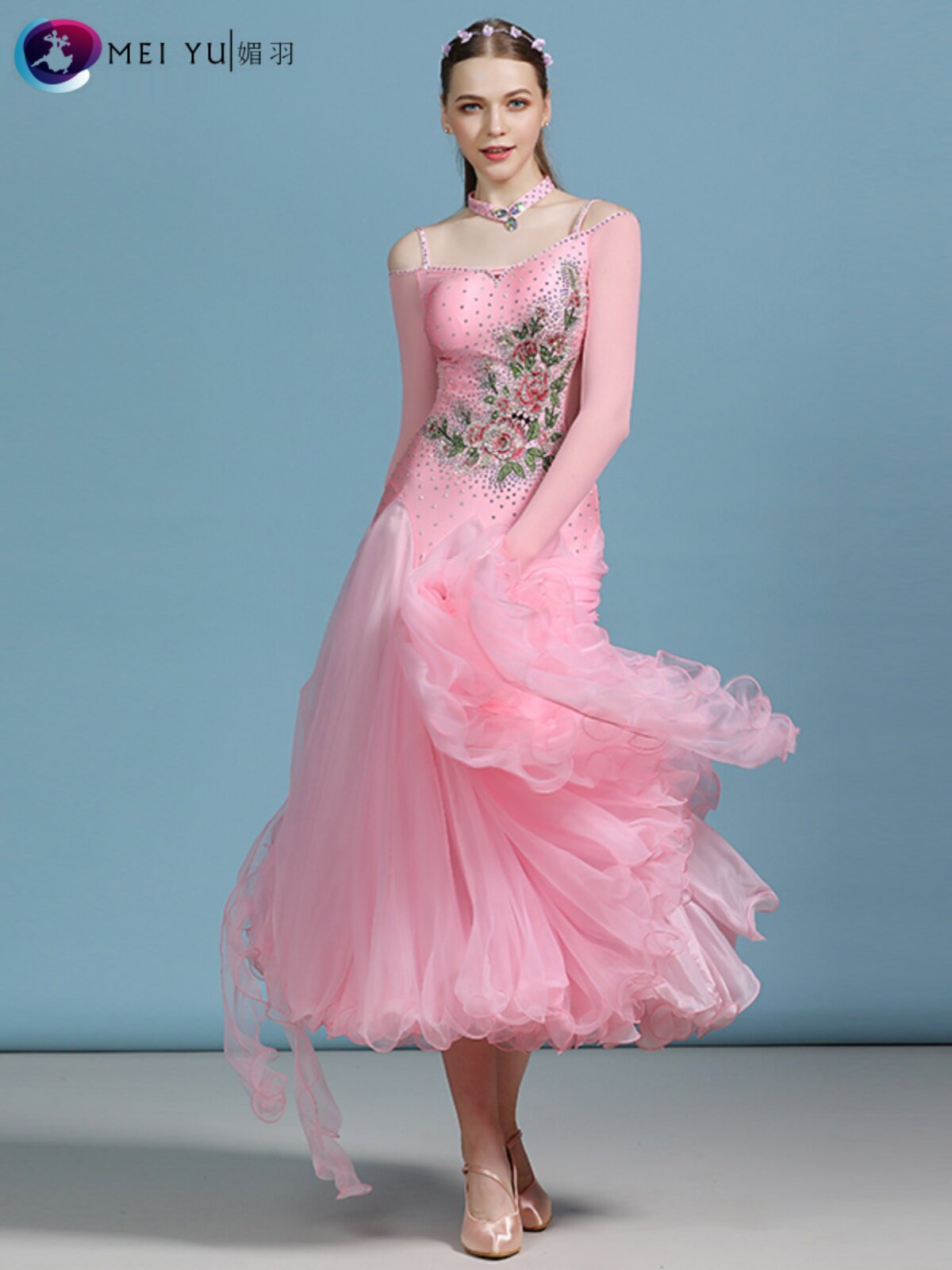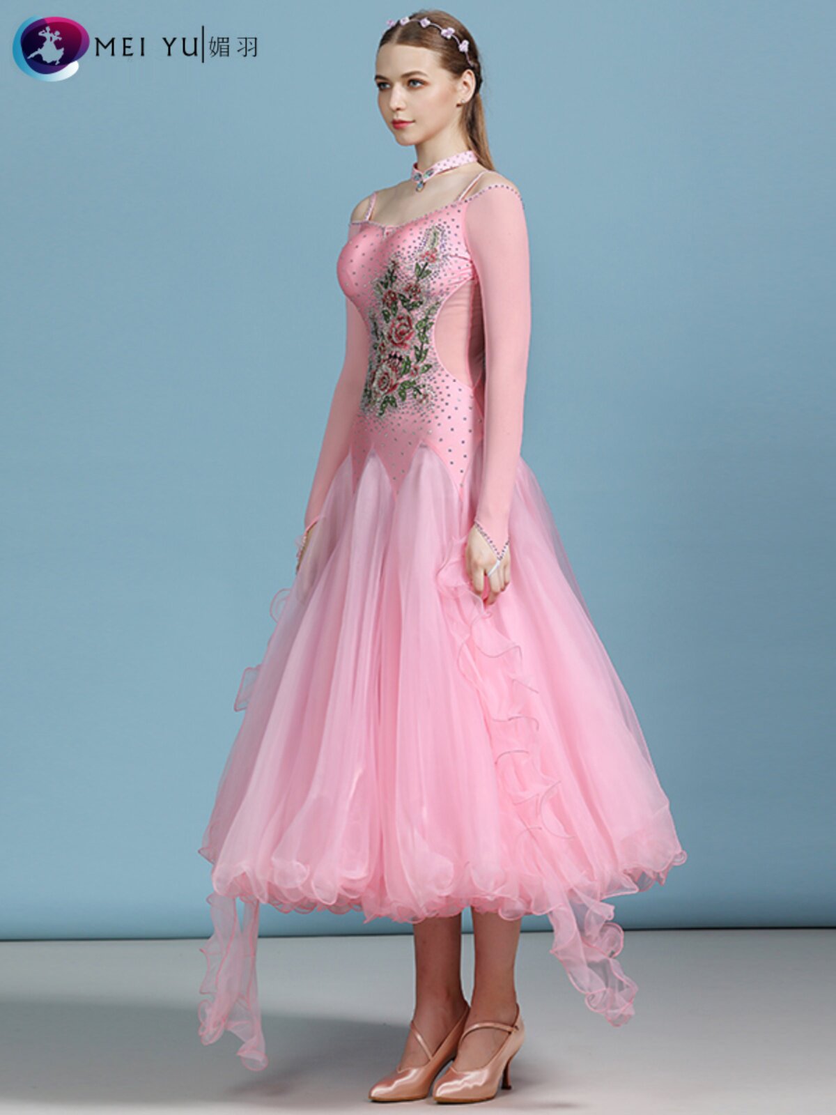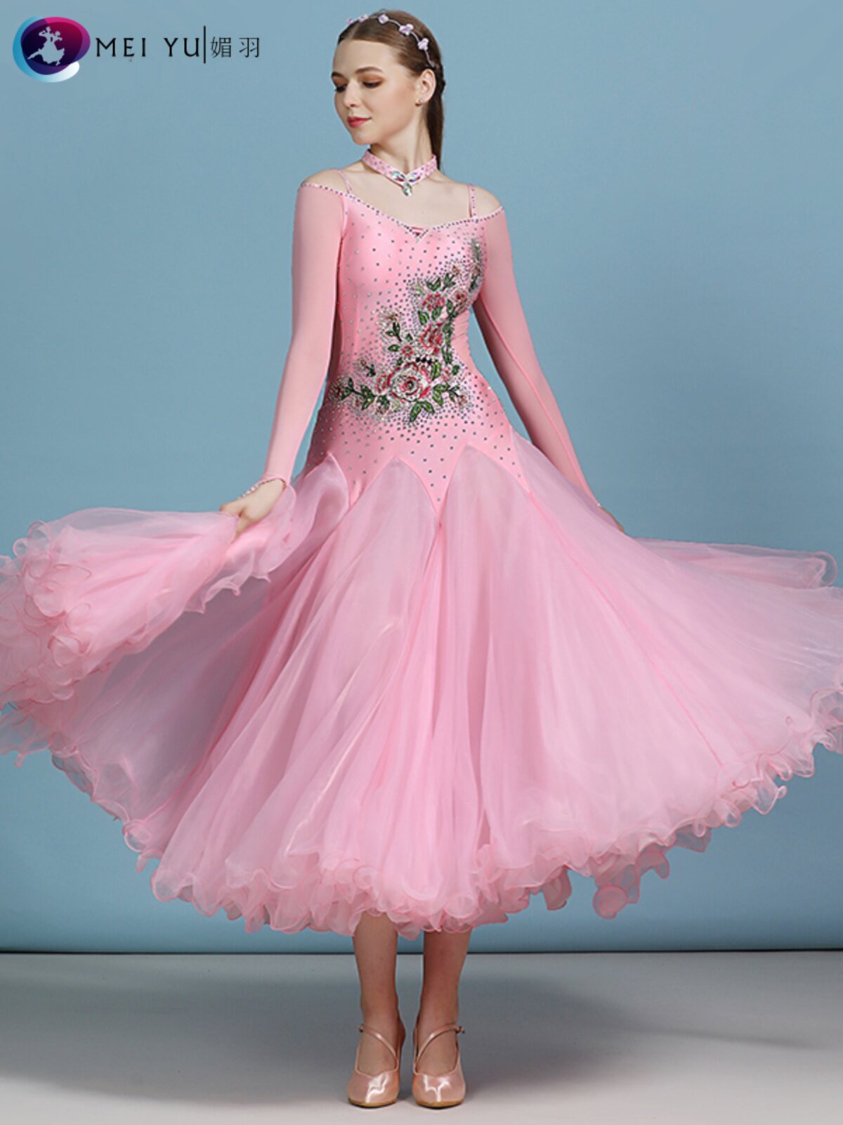媚羽 Взрослая современная танцевальная юбка My822 платье национальное стандартное платье танцевальной одежды, Petali Inlable Diamond Performance Suit