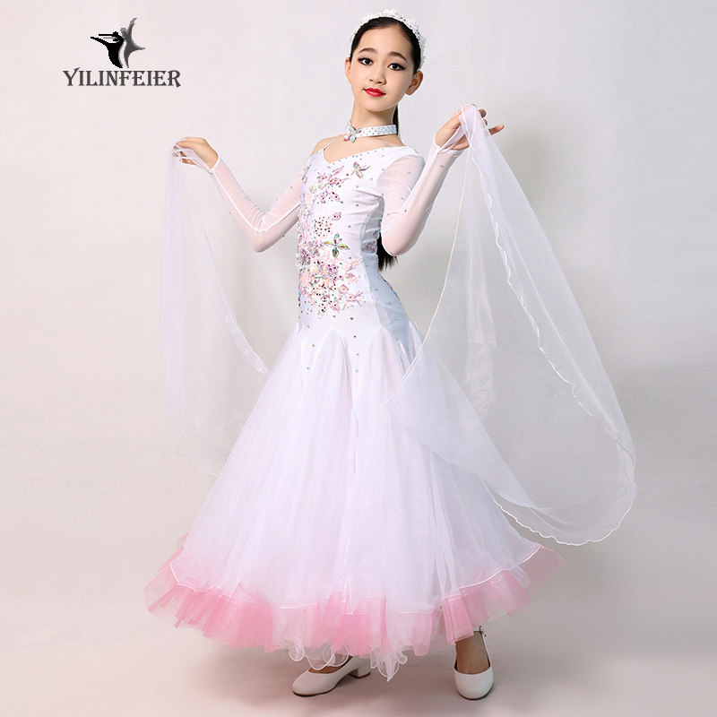 Прозрачно!Современная танцевальная юбка для девочек S7020 Детское национальное стандартное платье танце