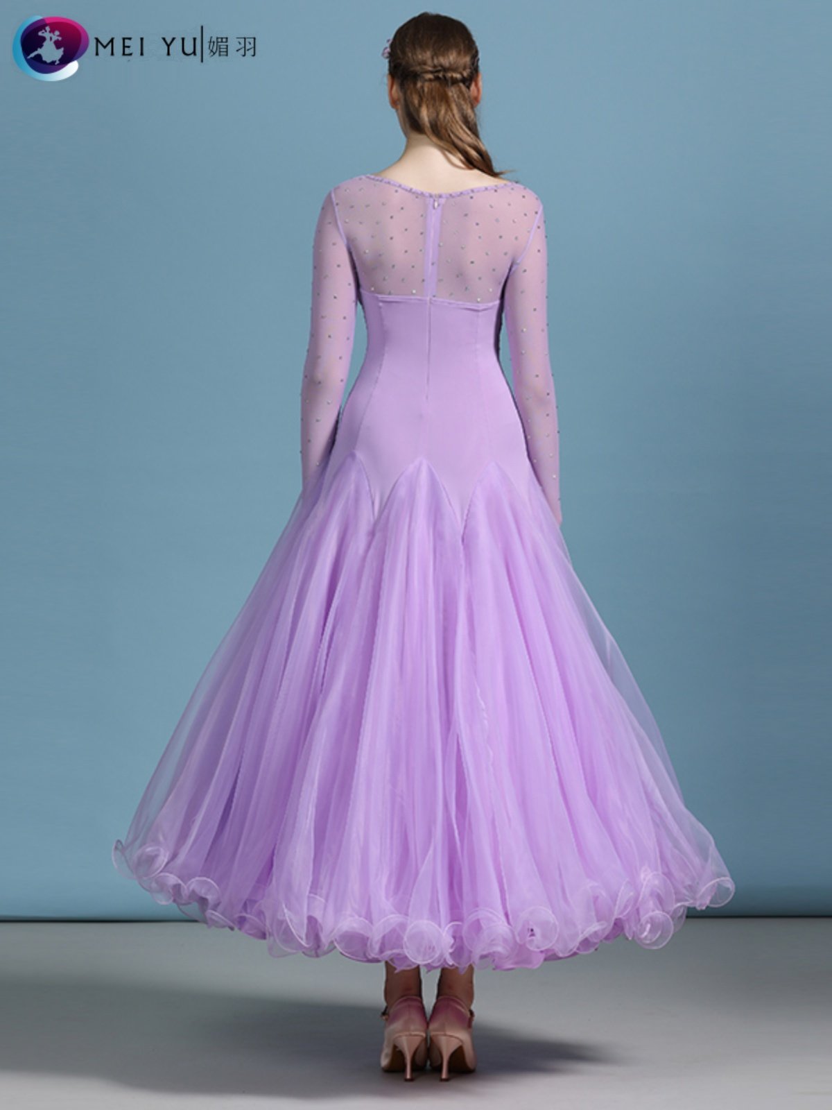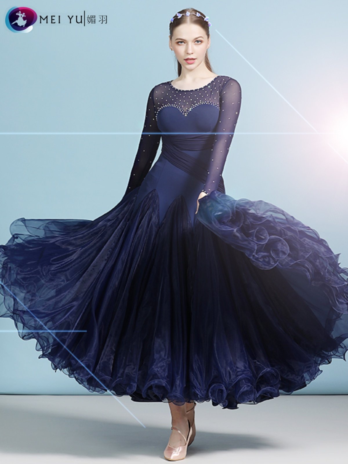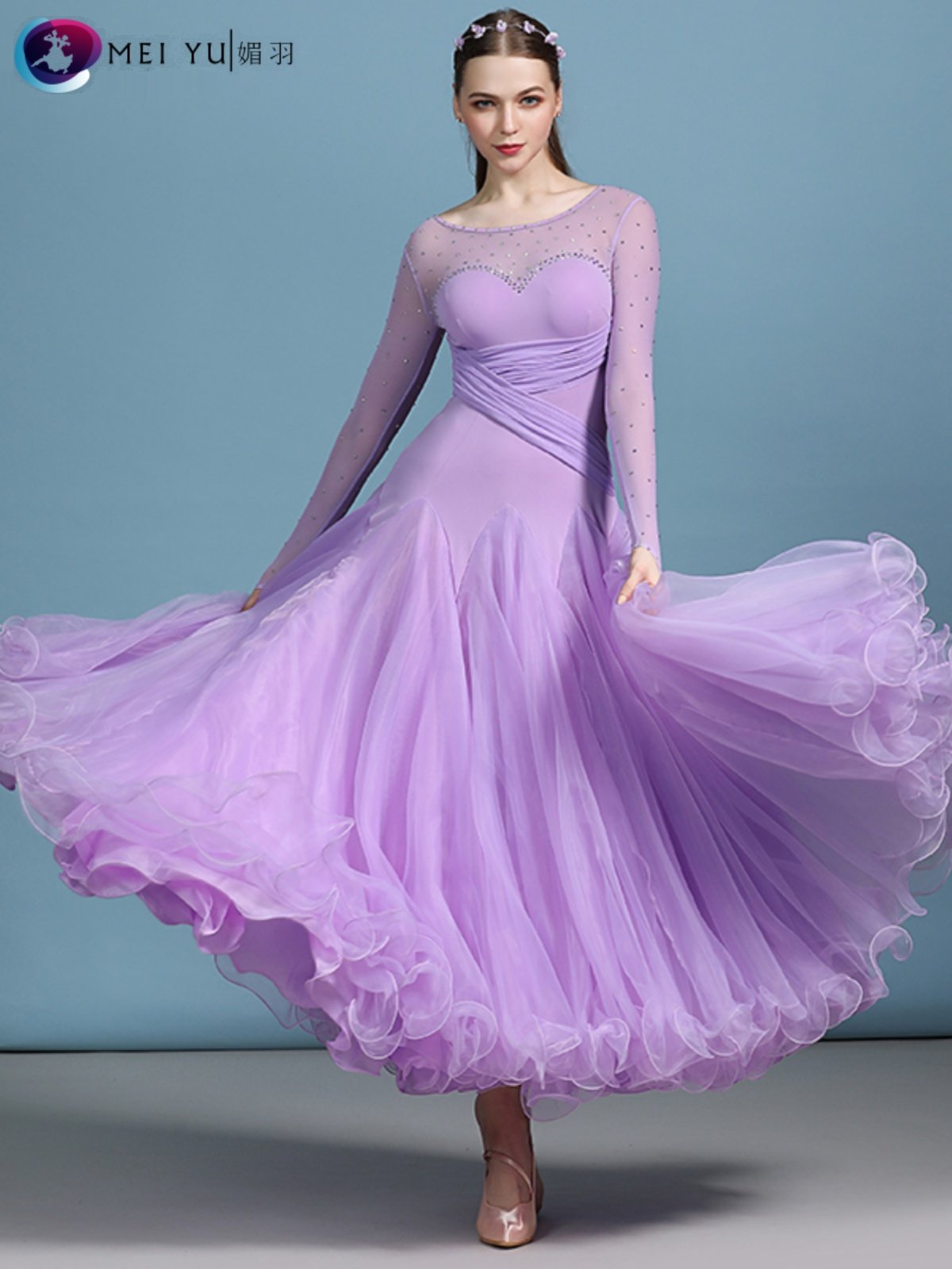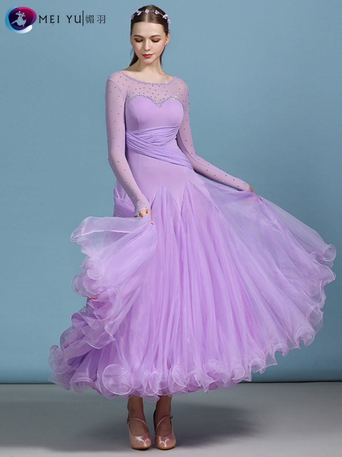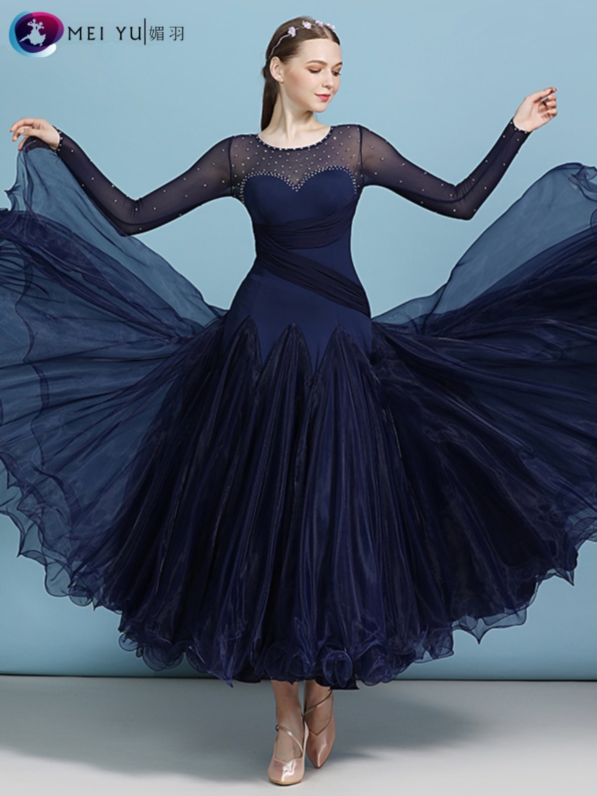 Юбка для современного танца Meiyu для взрослых, костюм для выступлений с бриллиантами MY820, костюм для бальных танцев, платье, юбка-качели для выступлений