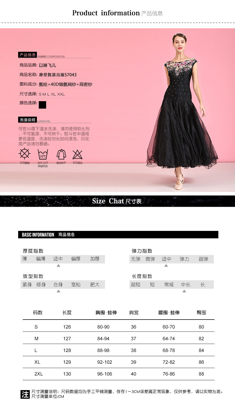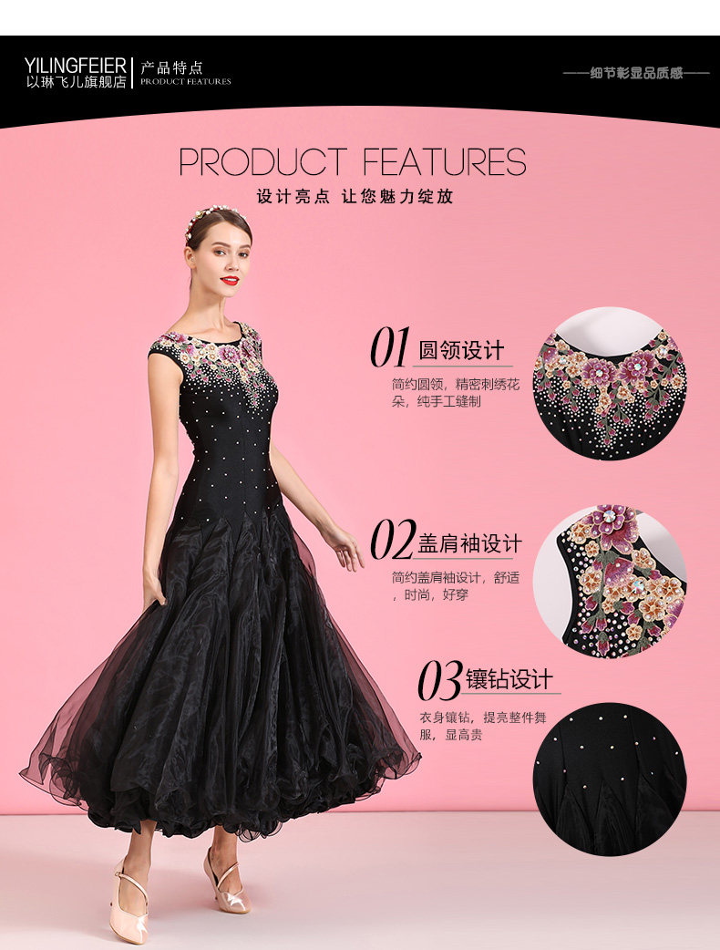 以琳飞儿 Версаль Роуз!Дизайнерская вышивка современная танцевальная юбка S7043 Национальное стандартное танцевальное платье танцевального танца