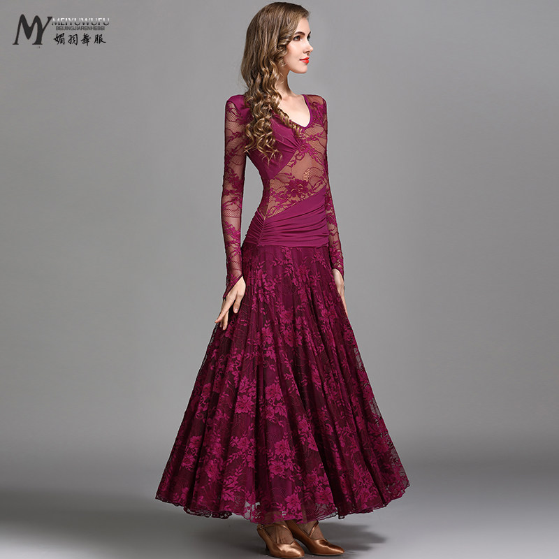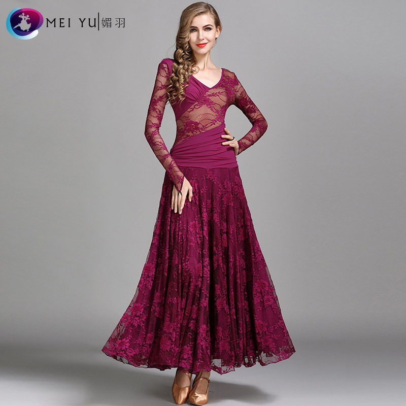 Юбка для современного танца Meiyu с большой распашной юбкой, кружевное шифоновое платье MY790, танцевальное платье по национальному стандарту, юбка для вальса