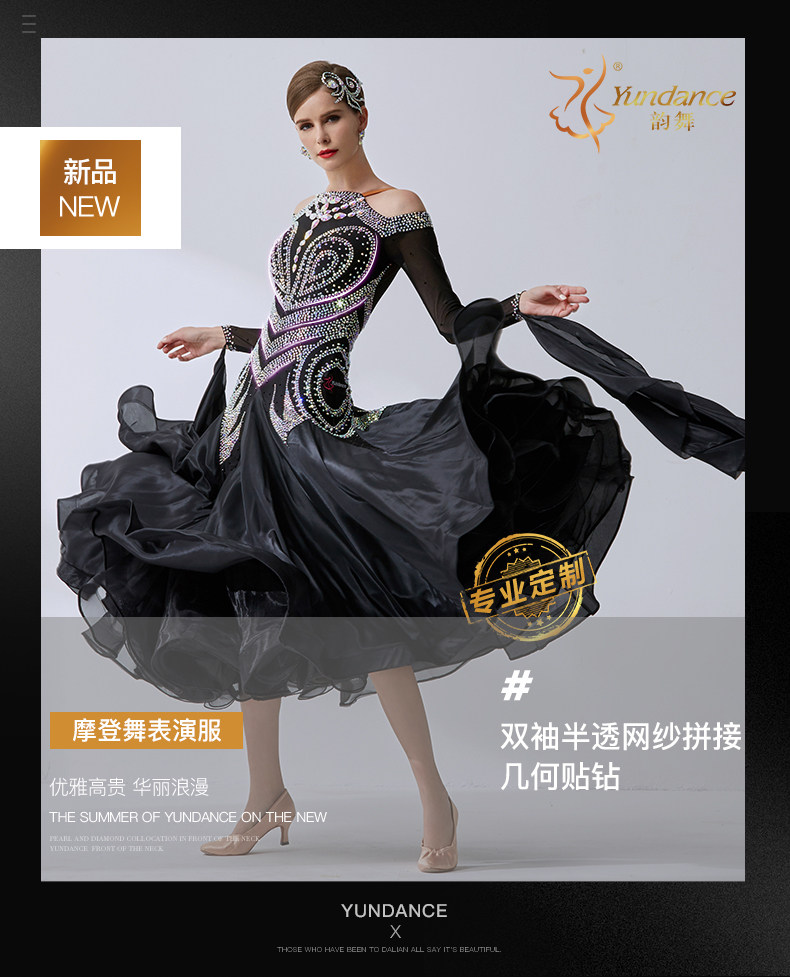 Yundance Rhyme Dance New National Standard Modern Dance Clothing Big Dress Watch Performance Sticker Competition конкуренция
