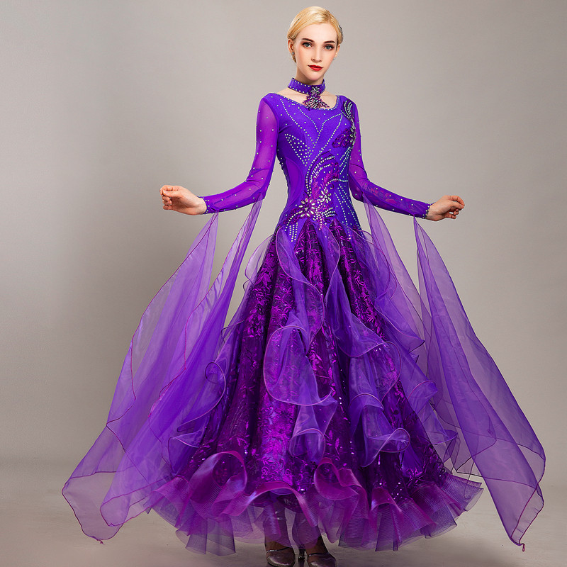 Весна и осень, новый стиль, современные танцевальные костюмы, платья для бальных танцев, национальные стандартные костюмы для выступлений, вальс, бриллиантовые конкурсные костюмы ручной работы