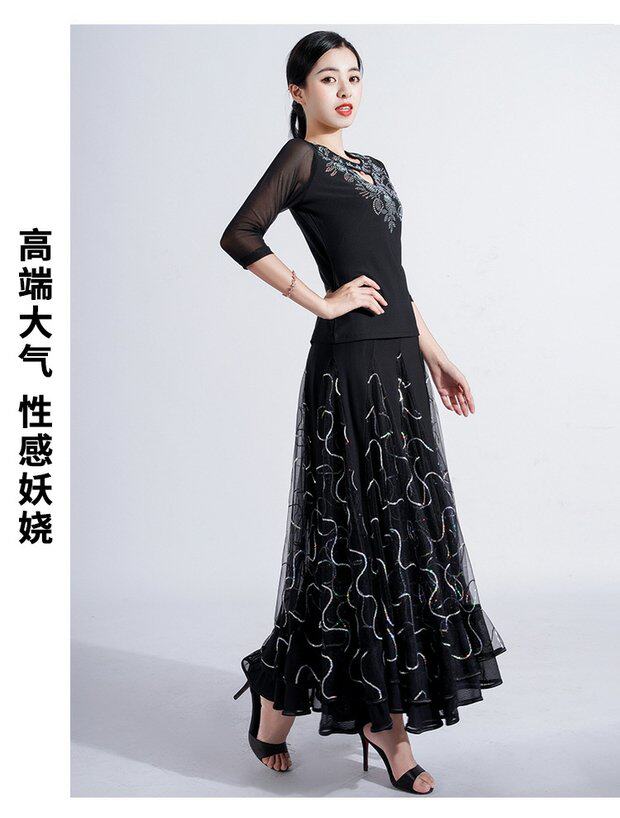Черный костюм для танцевального шоу, юбка, коллекция 2022