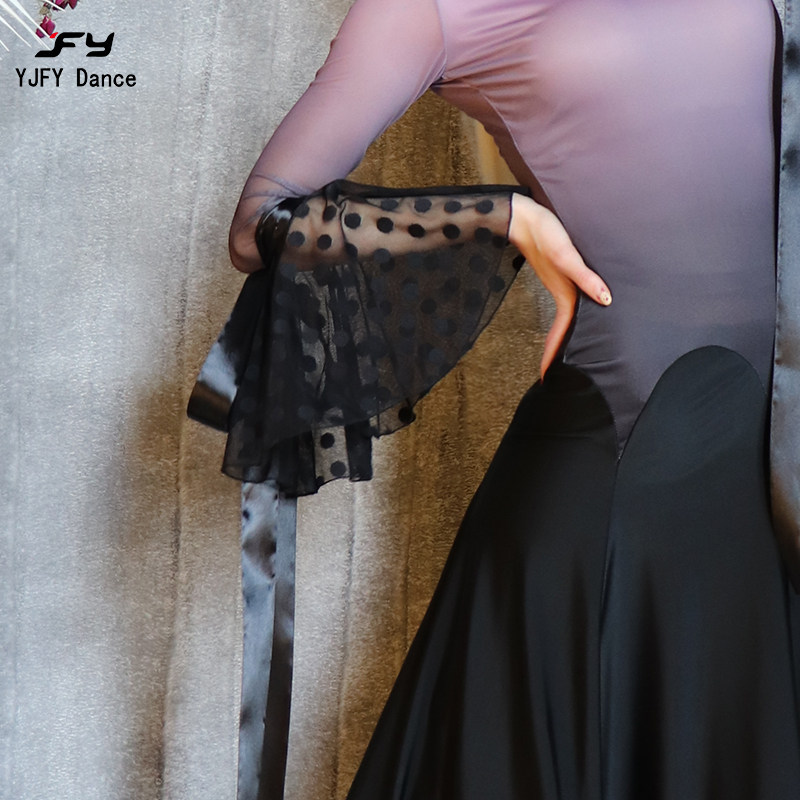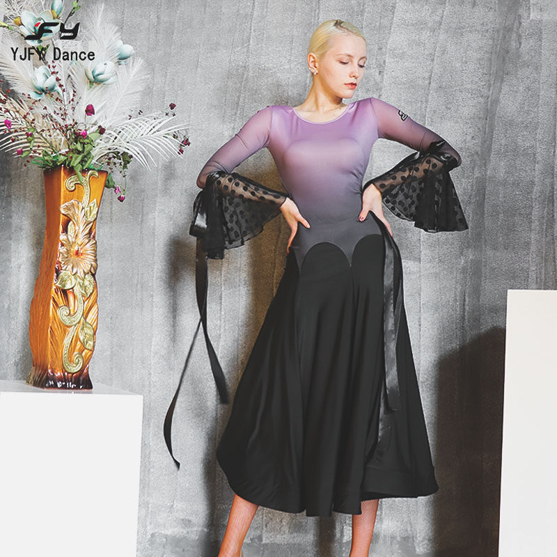 又见梵羽 Современная танцевальная одежда роговой рукав градиентная заправка длинная юбка