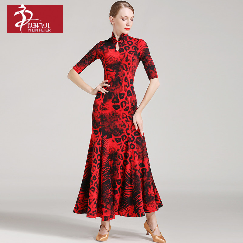 以琳飞儿 Взрослая современная танцевальная юбка S7009 Retro Cheongsam ведущая кантри -стандартная танцевальная юбка танцевальная служба танцевальная служба