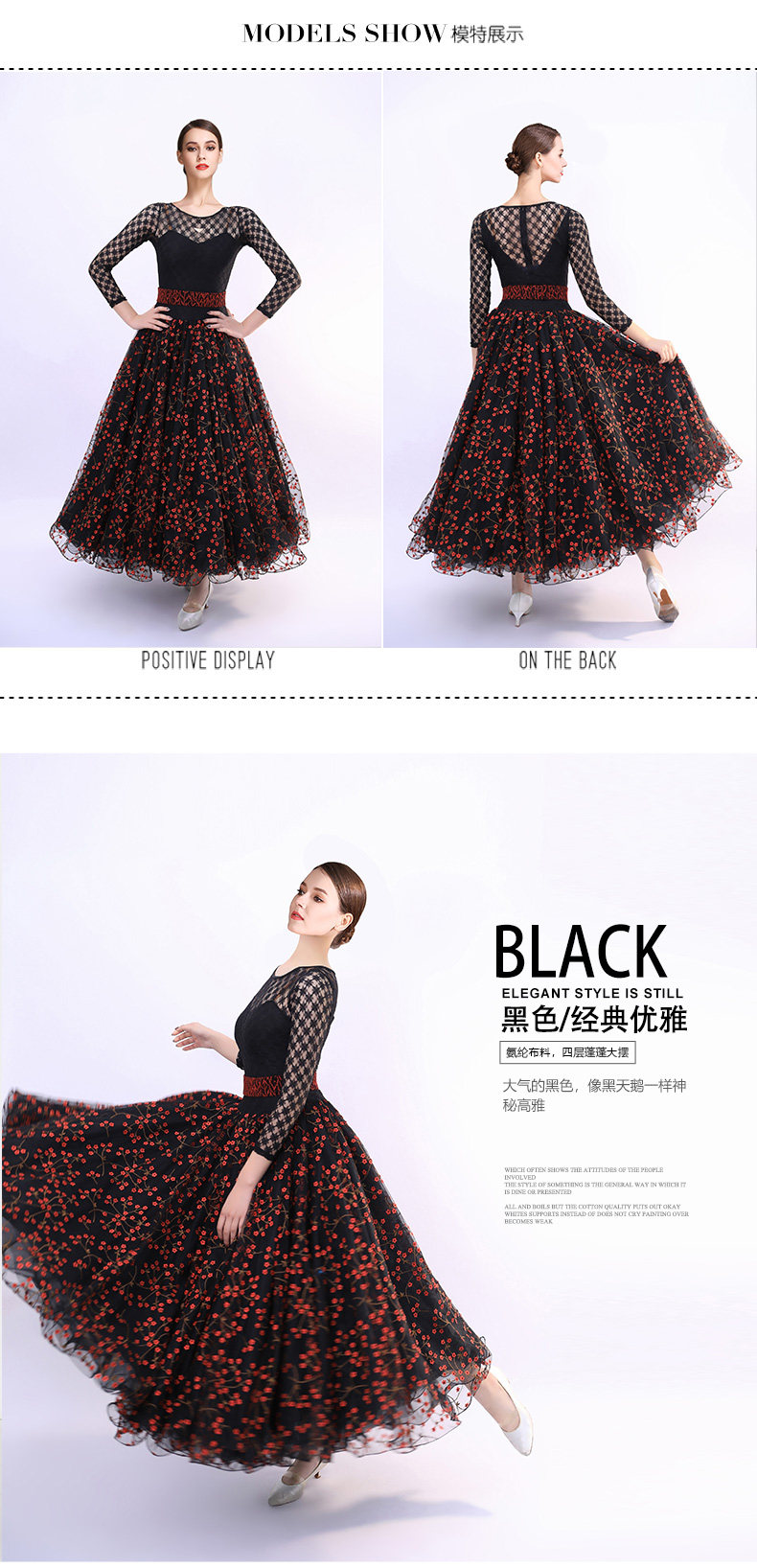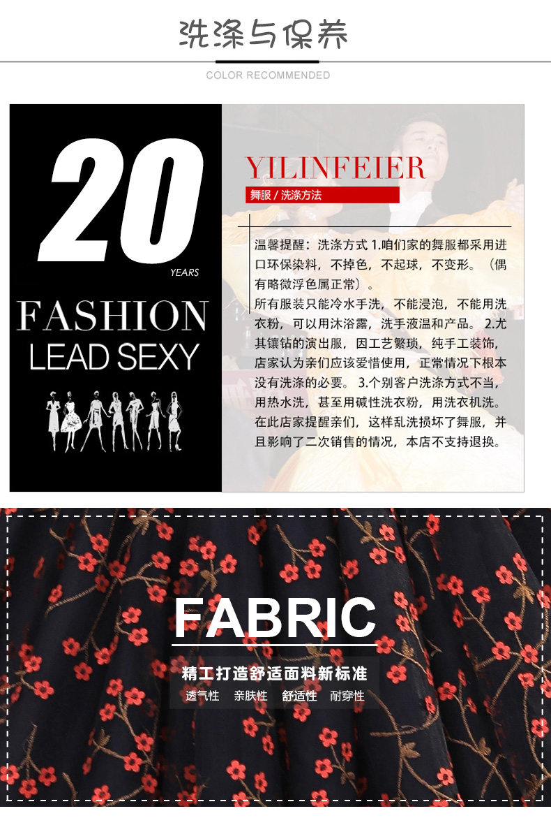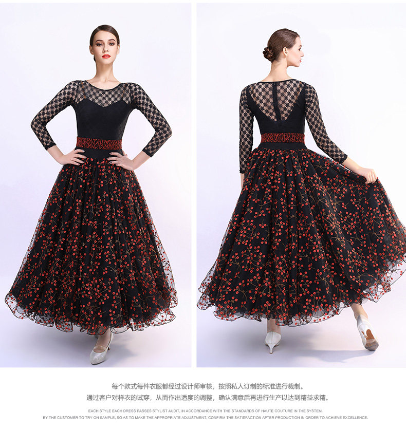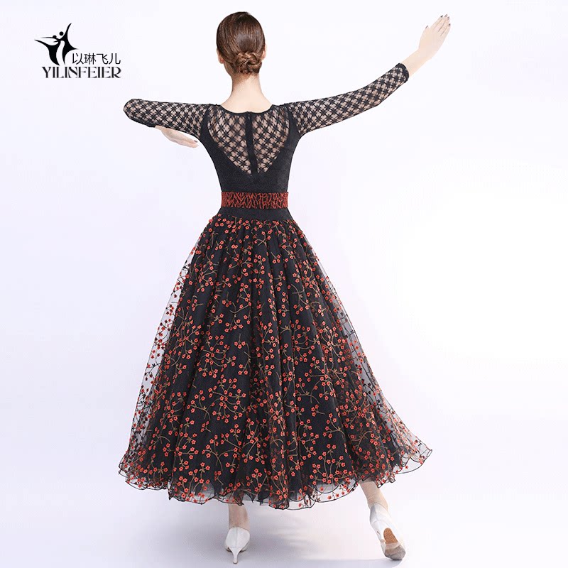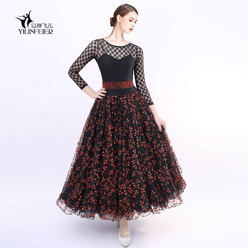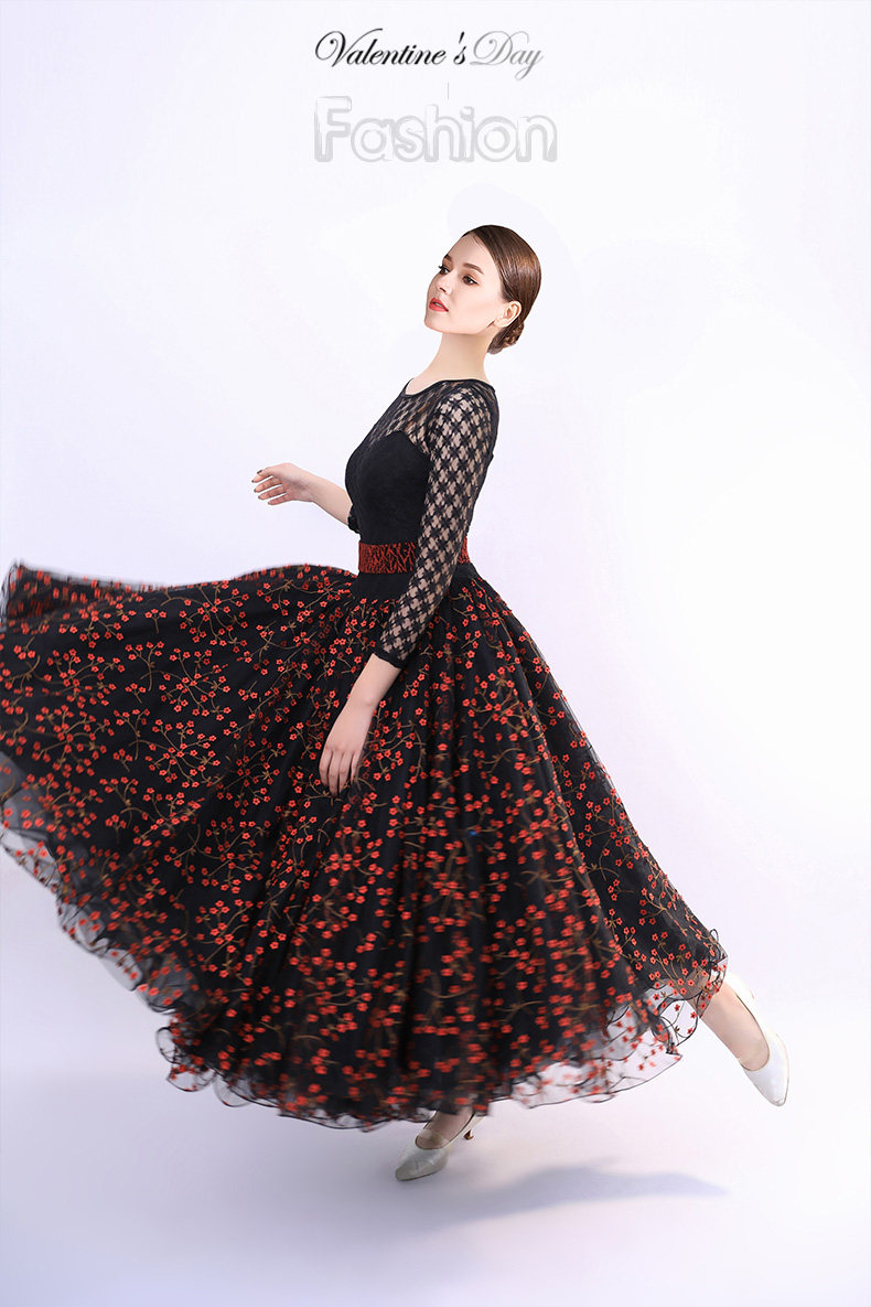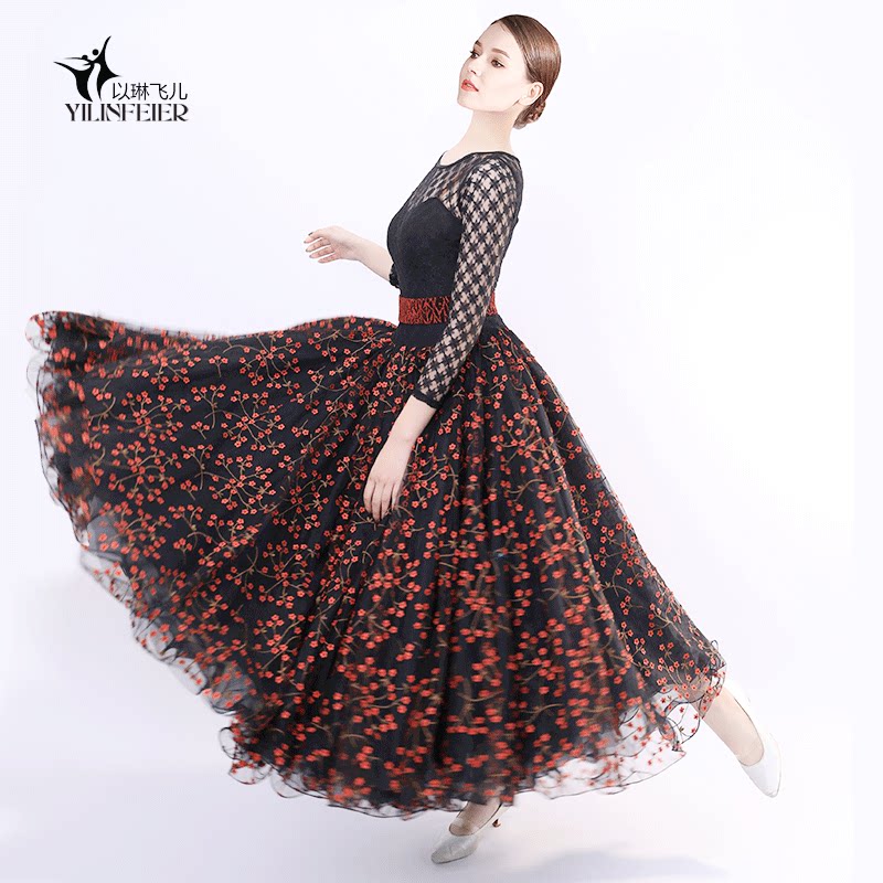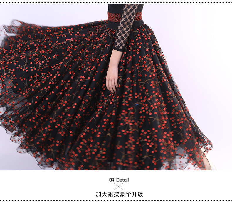 Французская роза!Новая взрослая современная танцевальная юбка Служба исполнения 2103 Национальное стандартное танцевальное платье вышитая большая юбка