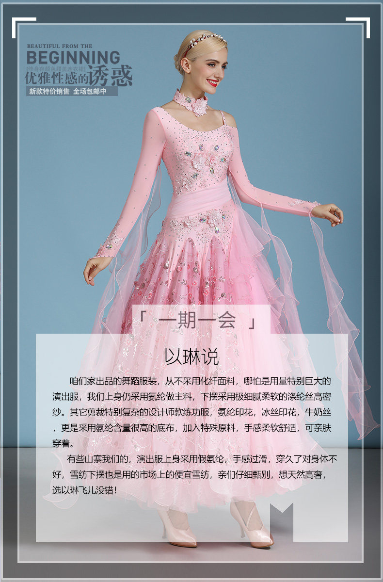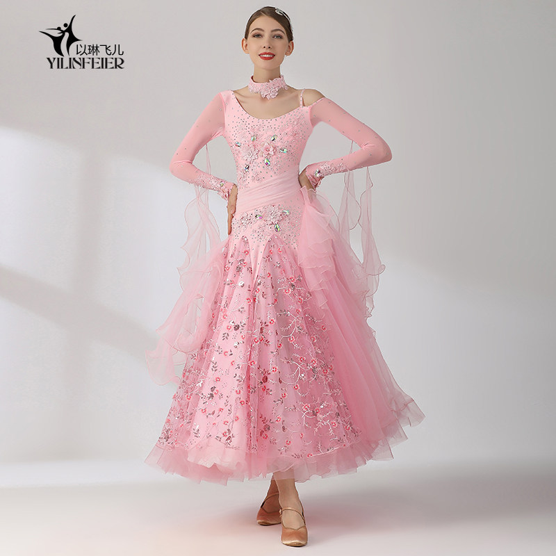 以琳飞儿 Сакура -авеню!Высокая стоимость современной танцевальной юбки S7046 Национальная стандартная танцевальная одежда платья.