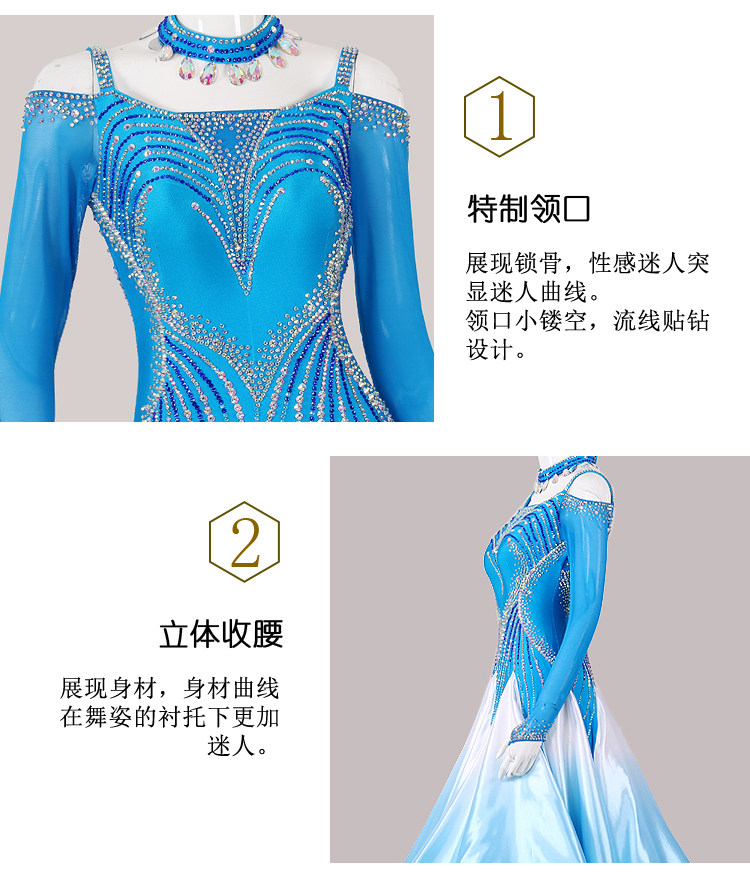 High -End National Label Dance Skirt Modern Dance Swart Новое представление играет танцевальное платье Big Blooming Waltz Communication Dance