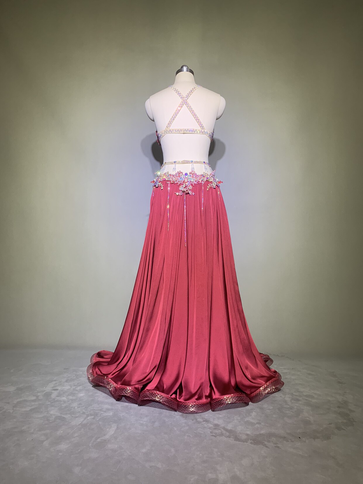 一舞庆庆 Костюм для танца живота Новый оригинальный дизайн течет большой стропный юбка Восточный танцевальный костюм Custom Y166