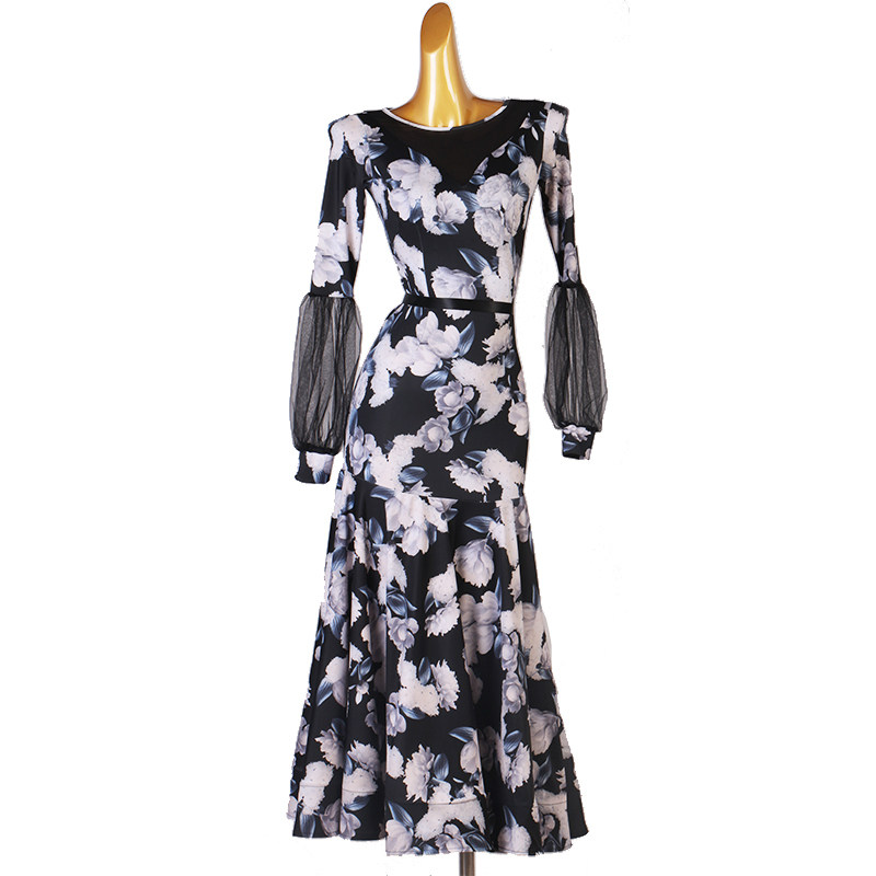 Черно -белый цветок -Королевные современные танцевальные платья национальное стандартное танцевальное танце