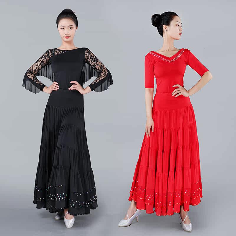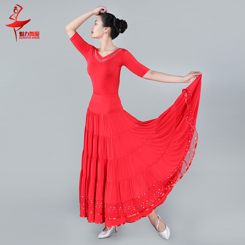 Новая национальная стандартная танцевальная юбка наполовину бальные танцевальные юбки Длинная юбка Женская современная танцевальная вальц