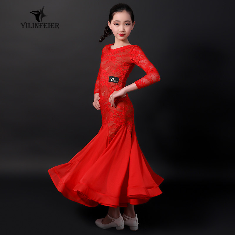 Цинканг детская современная танцевальная юбка 797 Детская национальная стандартная танцевальная одежда платье с длинным рукавом перспектива тренировочная форма