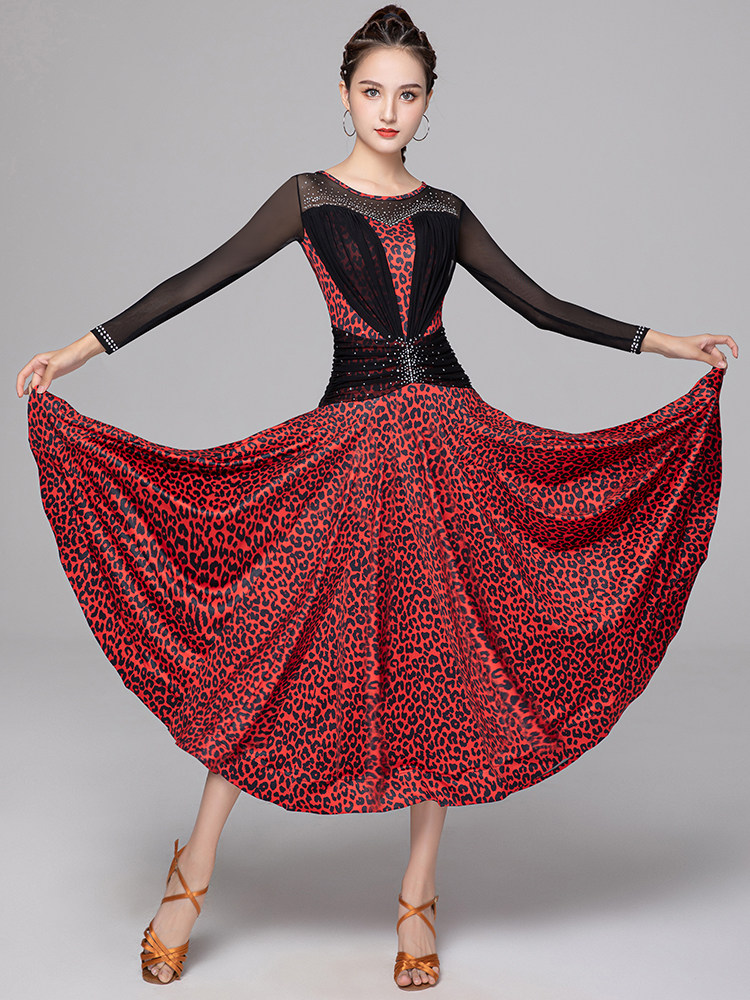 Стол конкурса современной танцевальной юбки исполнил новый национальный стандарт Walz Interstel -дружелюбное танцевальное платье леопарда леопарда