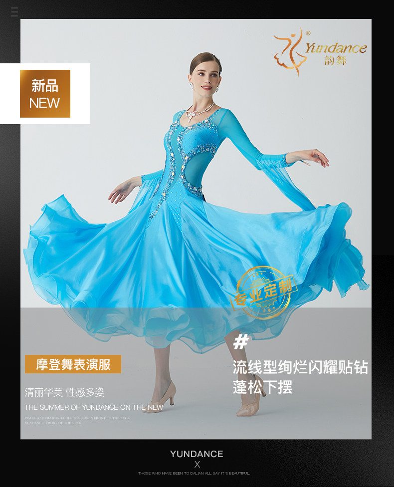 Custom Yundance Dance Pearl шелк шелковый стандартный платье современного танцевальной одежды исполнение