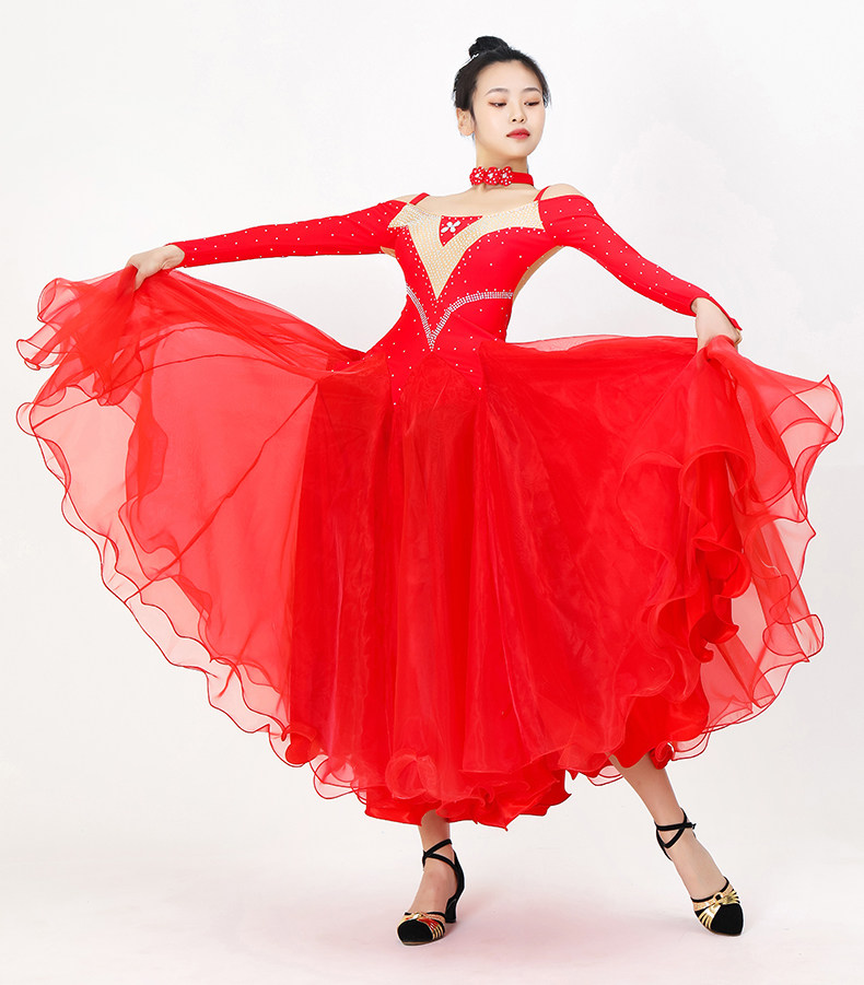 2024 Новое национальное стандартное танцевальное платье, современный соревнование, одежда Walz Big Skirt Performance Performance High -End Dance