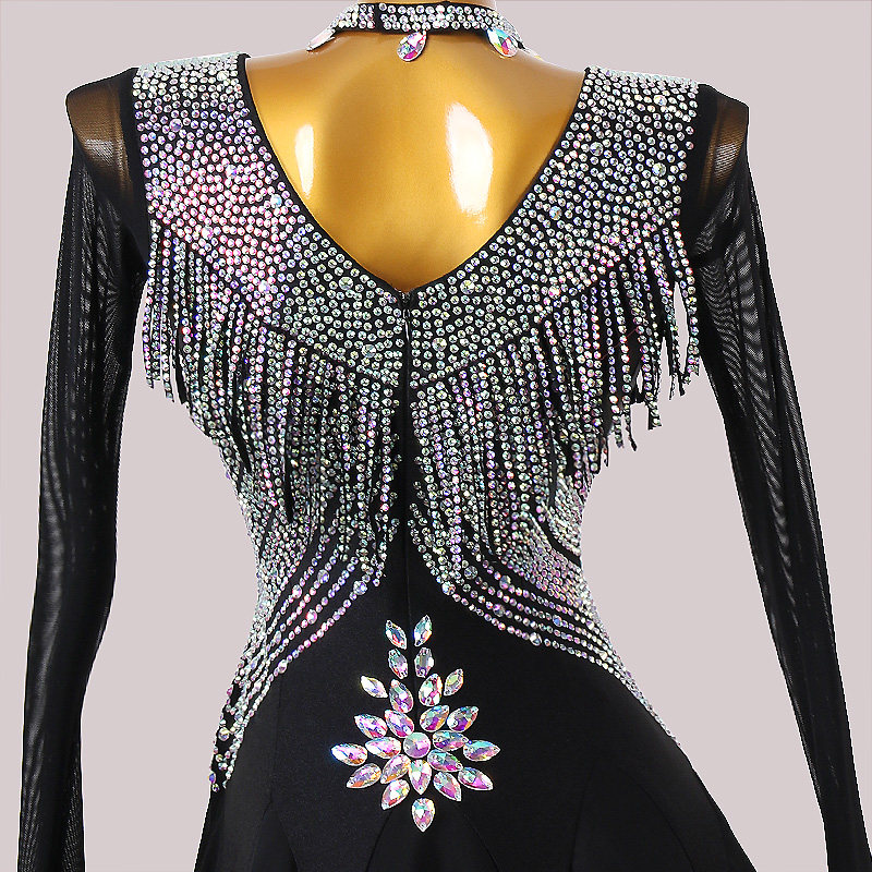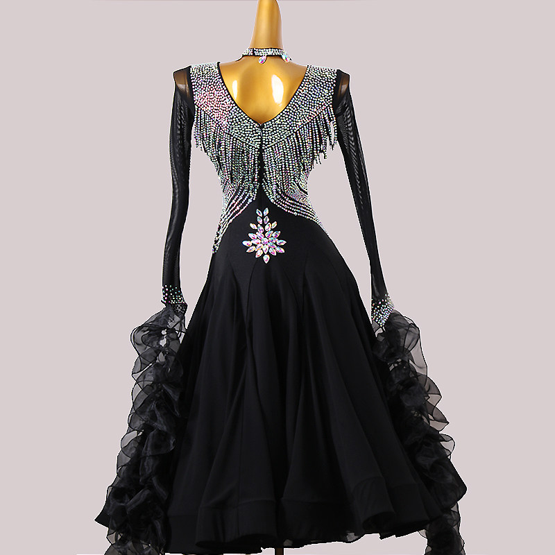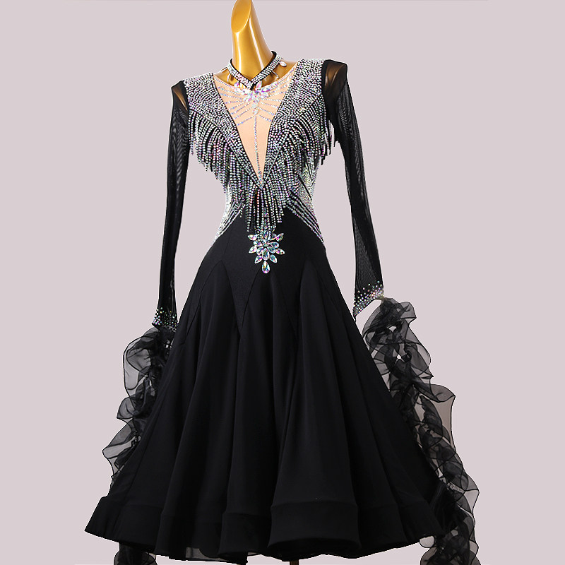 Современная танцевальная юбка Новая национальная стандартная танцевальная конкурс высокий платье -платья танцевальная танце
