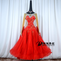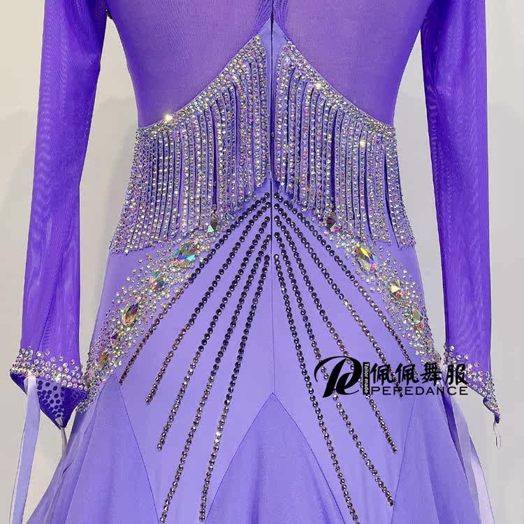 佩佩舞服 Modern Performance Skirt National Standard Walz Tango Dance Purple Performance Dance Skirt H1032