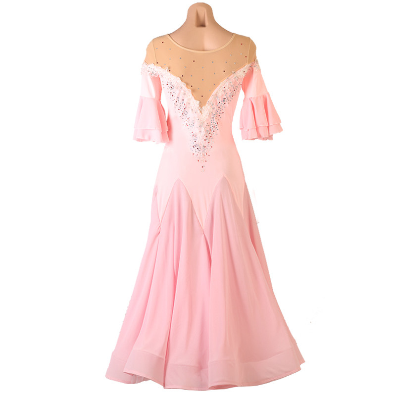 Розовая современная танцевальная юбка профессиональная конкурс выступления одежда Walz дружба танцевальная шифоновая юбка Новые продукты