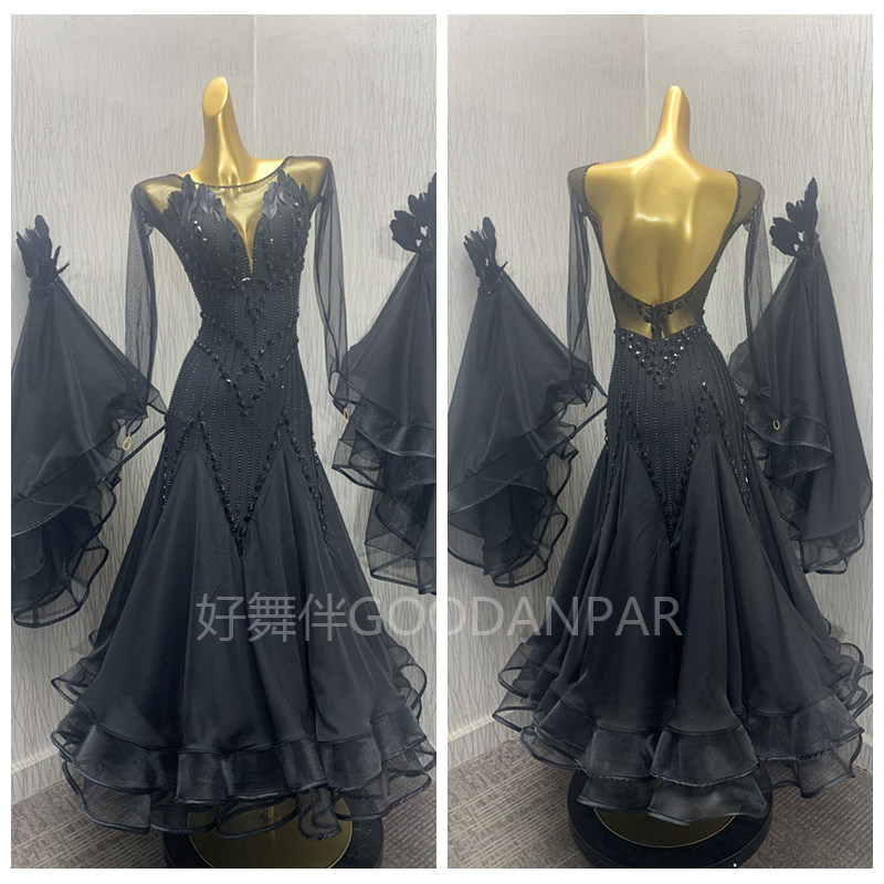 Хороший танцевальный компаньон Goodanpar New Modern Walz Competition Performance Service Service Женский платье женское платье черное небо шелк