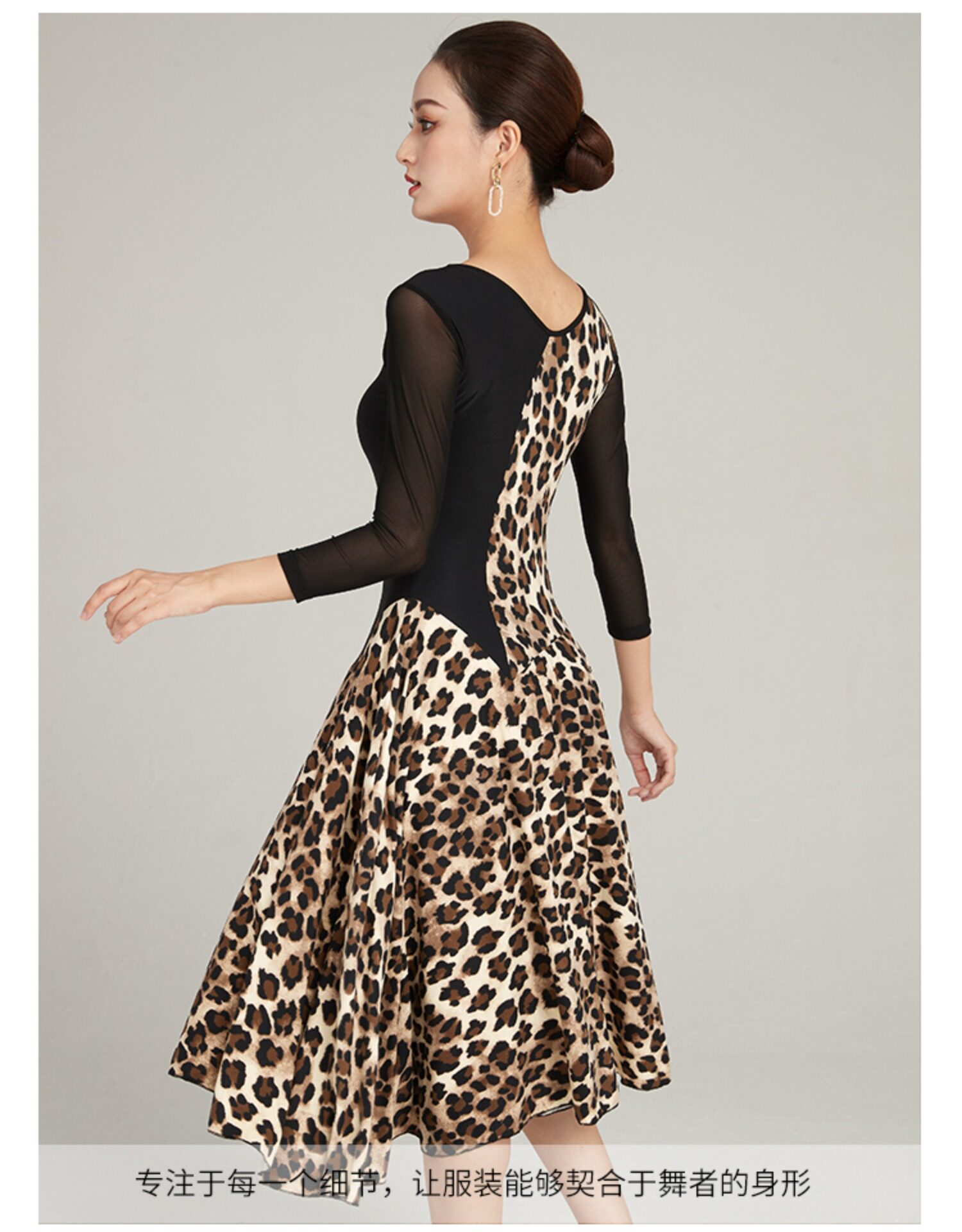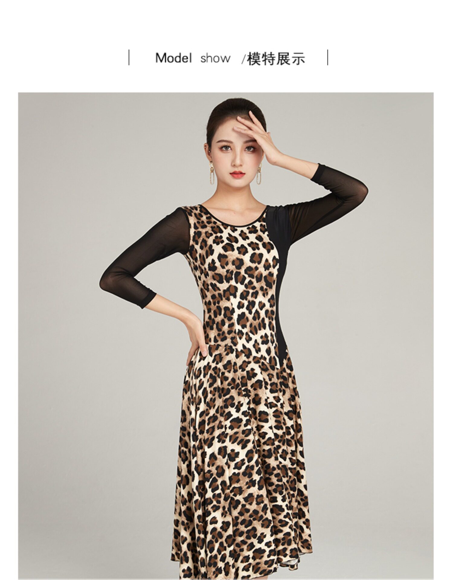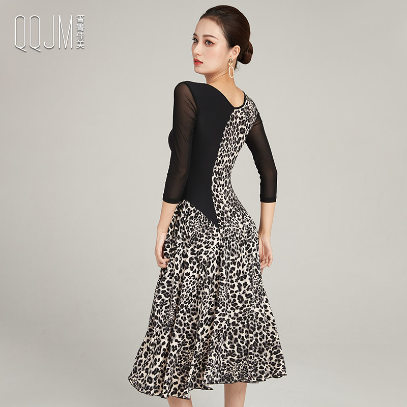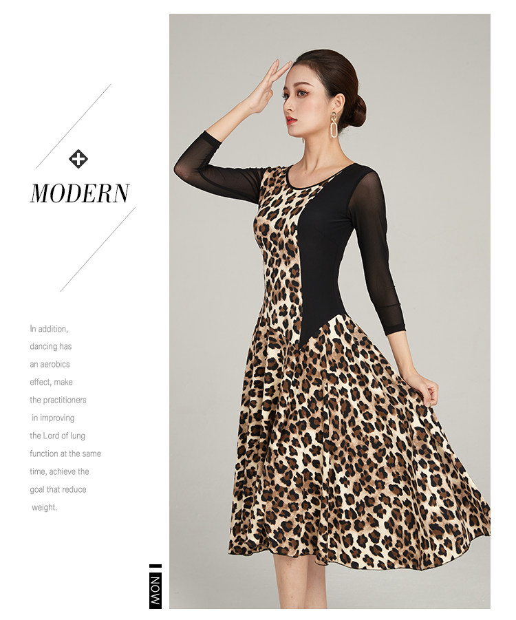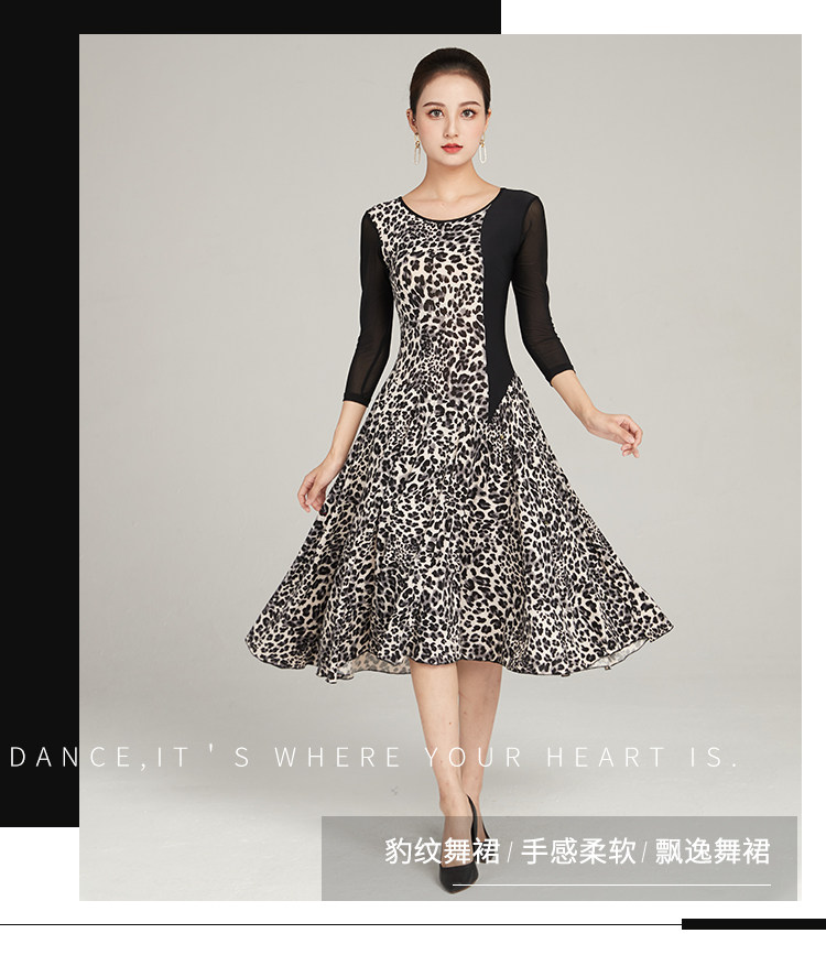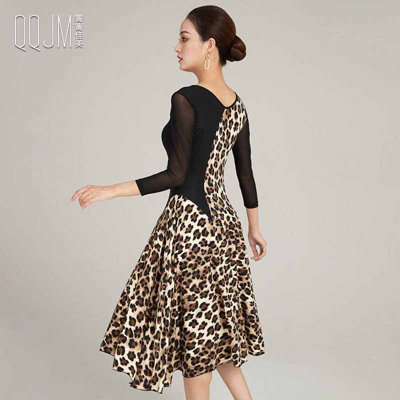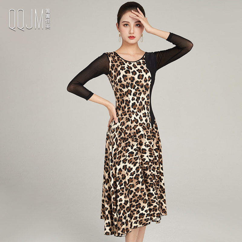 Современная танцевальная юбка 2024 Весна и лето новое леопардовое принт с большим платьем с плеском Slim сетки национальная бальная танцевальная юбка для бальных залов