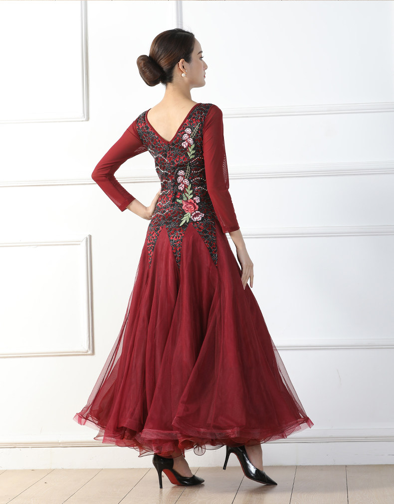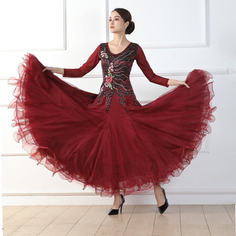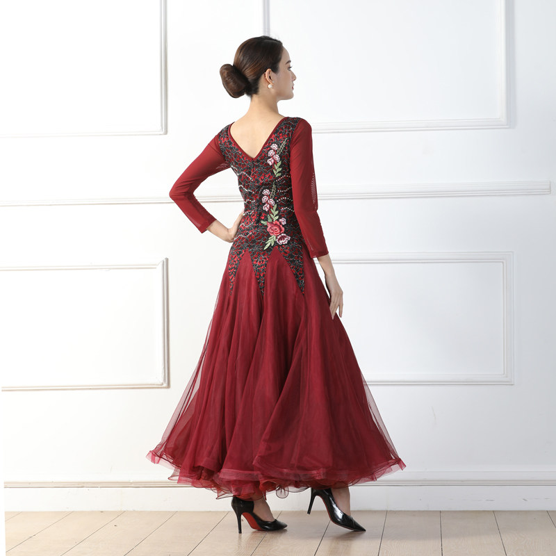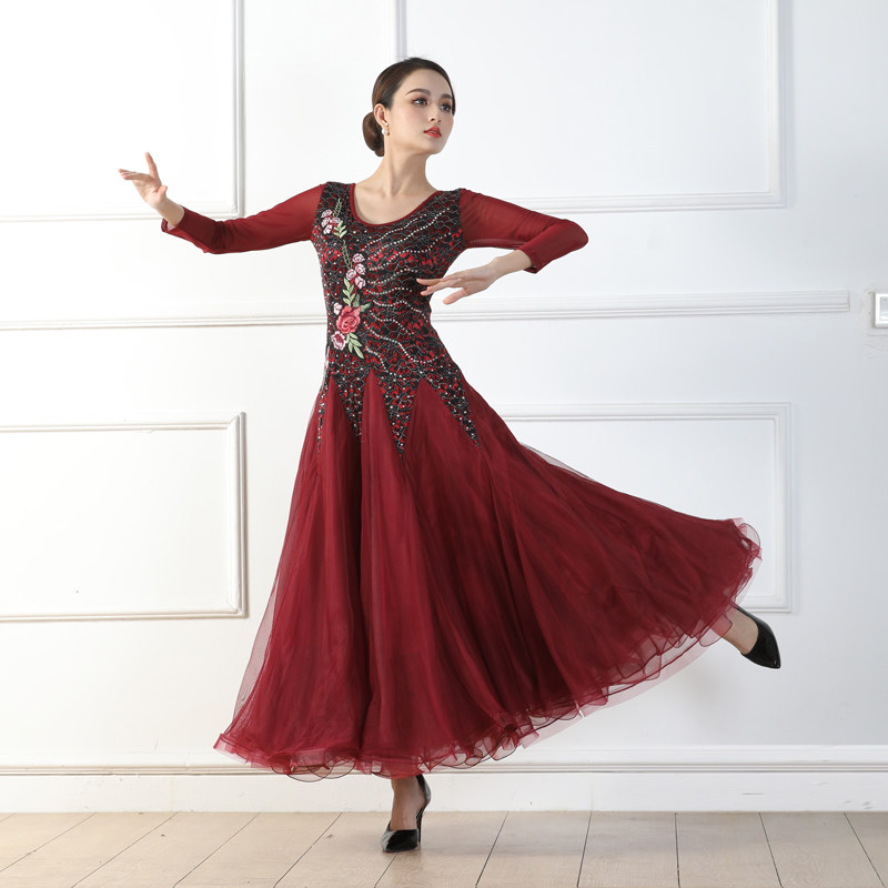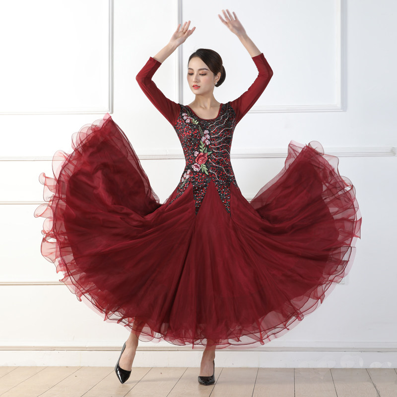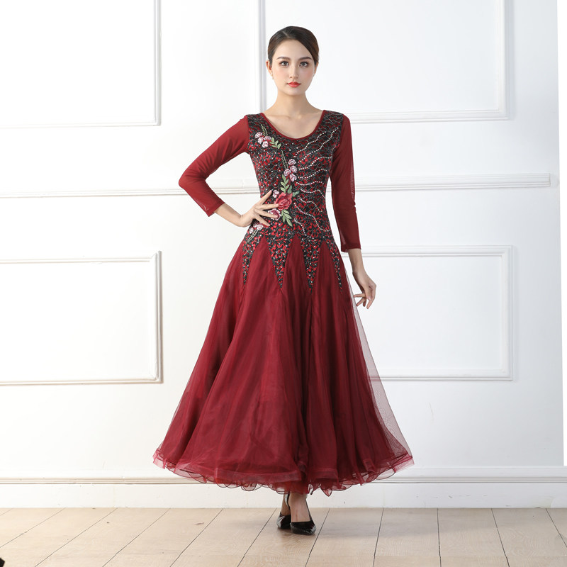 Весенний стиль крупные костюмы национальные стандартные танцевальные бургундские бальные бальные танце