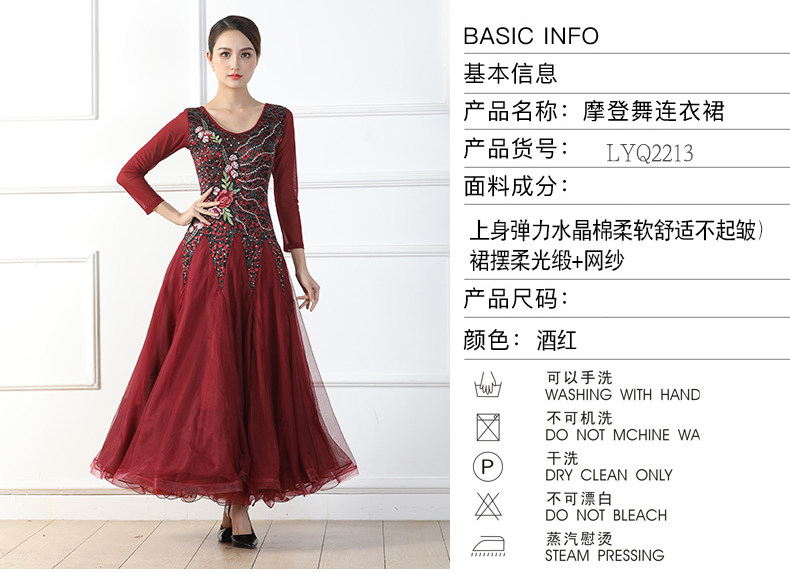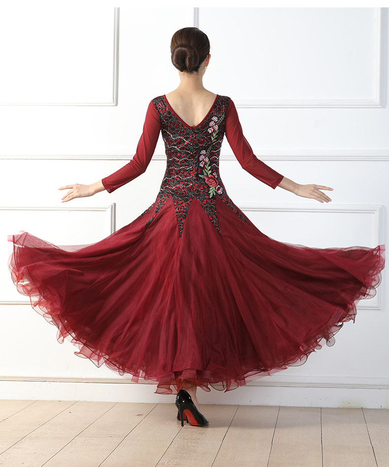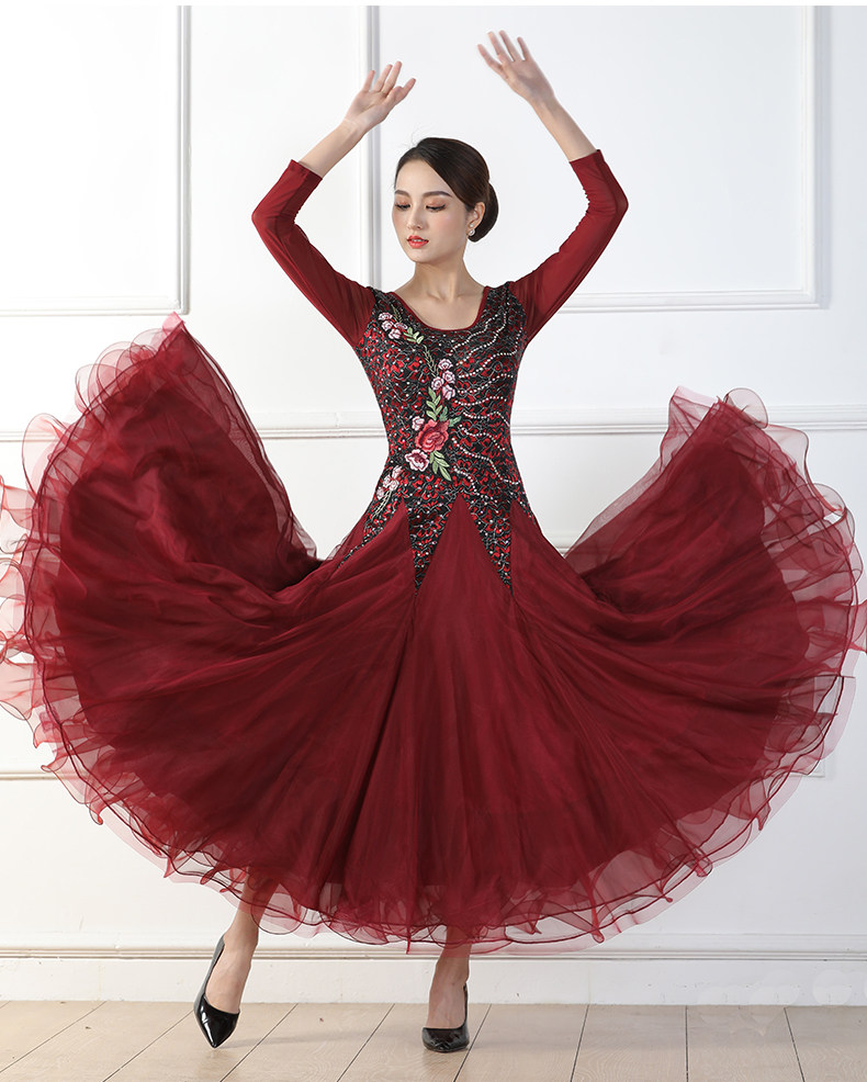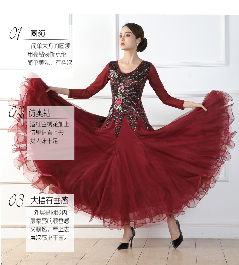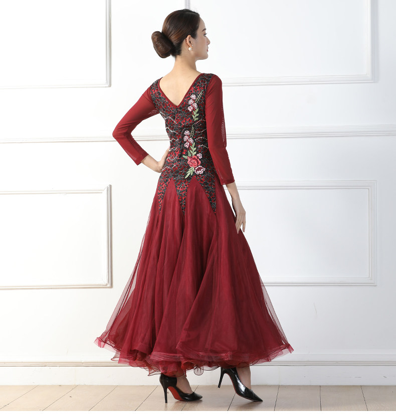Весенний стиль крупные костюмы национальные стандартные танцевальные бургундские бальные бальные танце