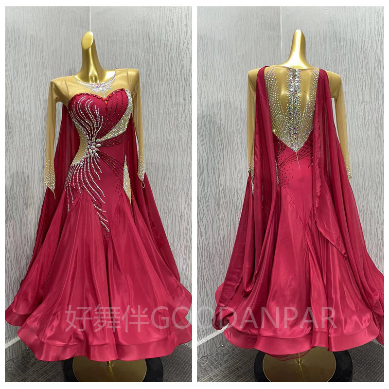 Хороший танцевальный аккомпанемент Goodanpar Modern Competition Униформа Walz Специальная jube Red Pearl шелк имитация Олимпийская настройка бриллиантов