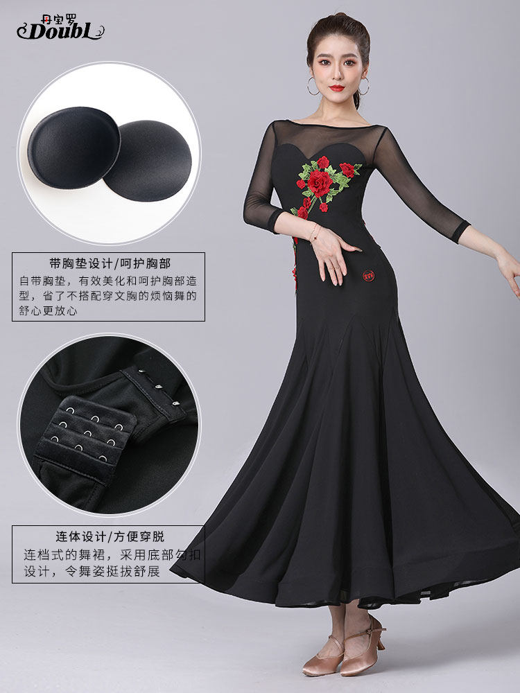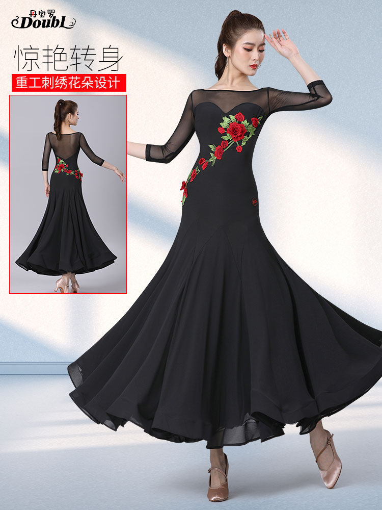 Данбао Роналду Стандартная танцевальная юбка высокая черная бассейна конкурс модный дизайн вышивки бренд вальц танцевальный юбка лето