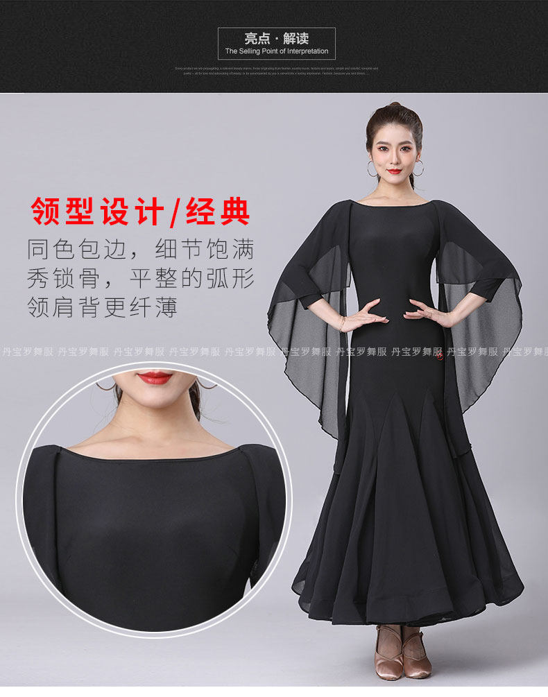 Danbaoluo платье для бальных танцев, новая женская черная танцевальная юбка, элегантная шаль, юбка для танцев национального стандарта, вальс