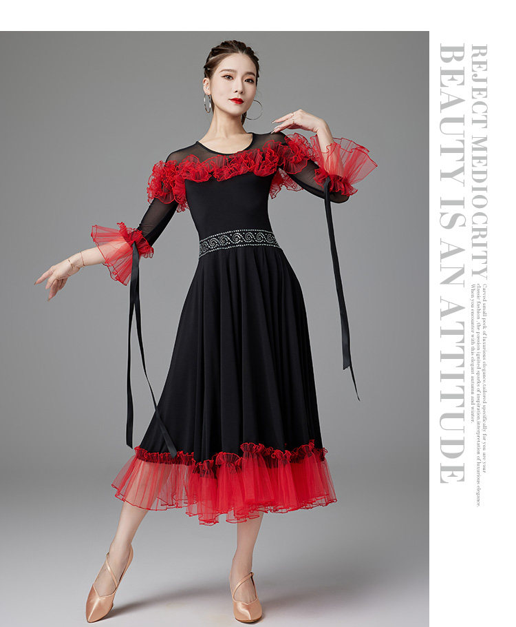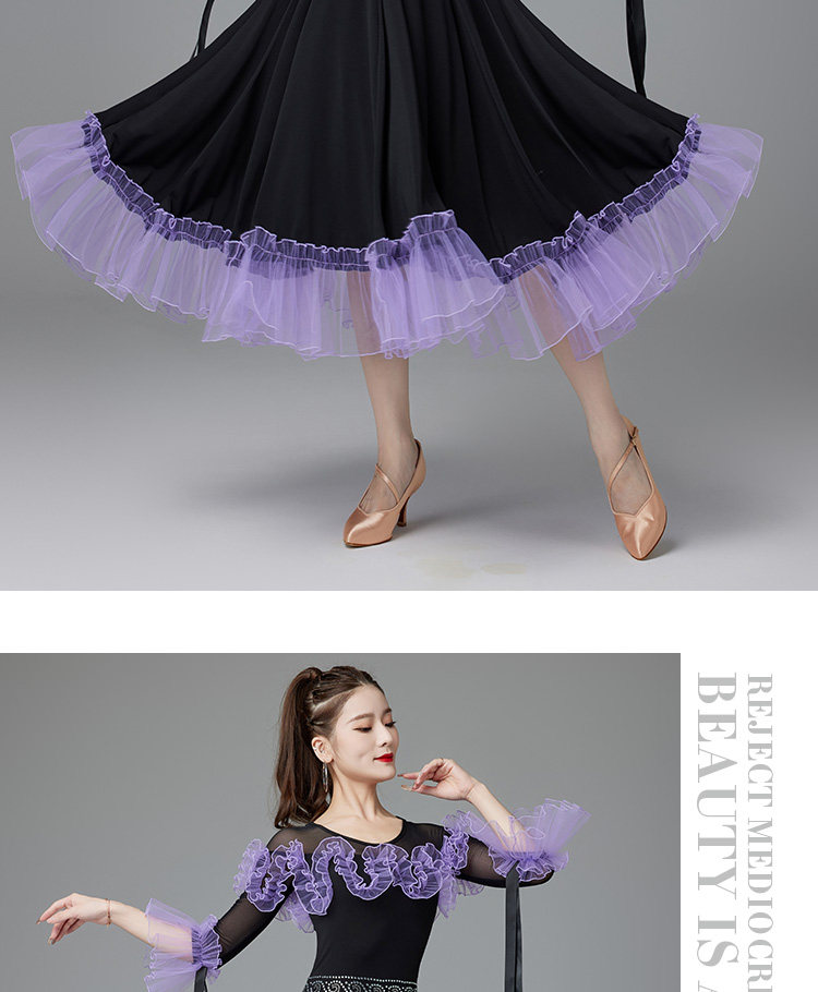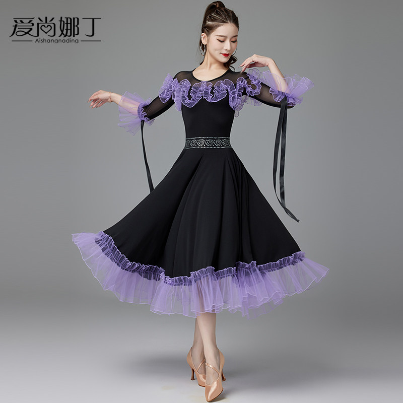 Национальная стандартная танцевальная юбка New 2024 Соревновательные настольные выступления современный вальц между большим танце