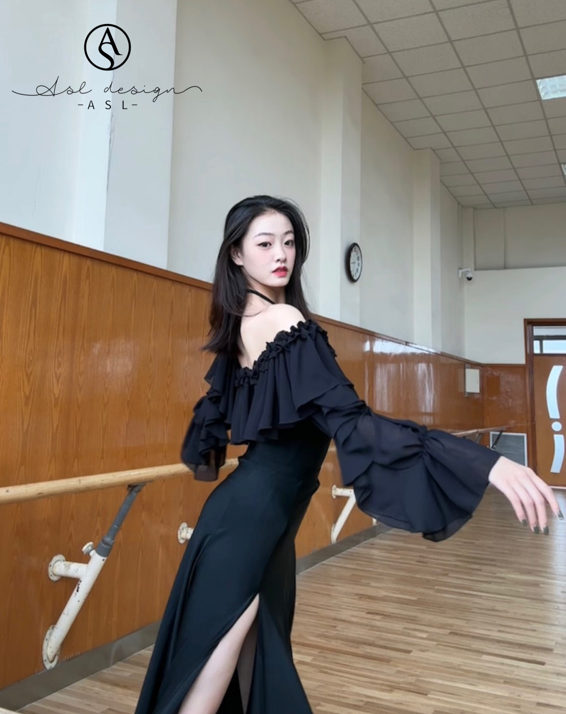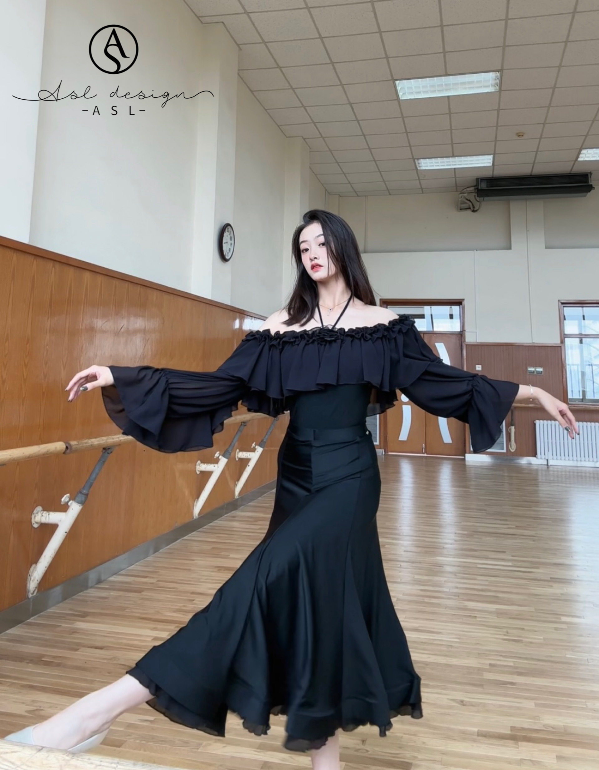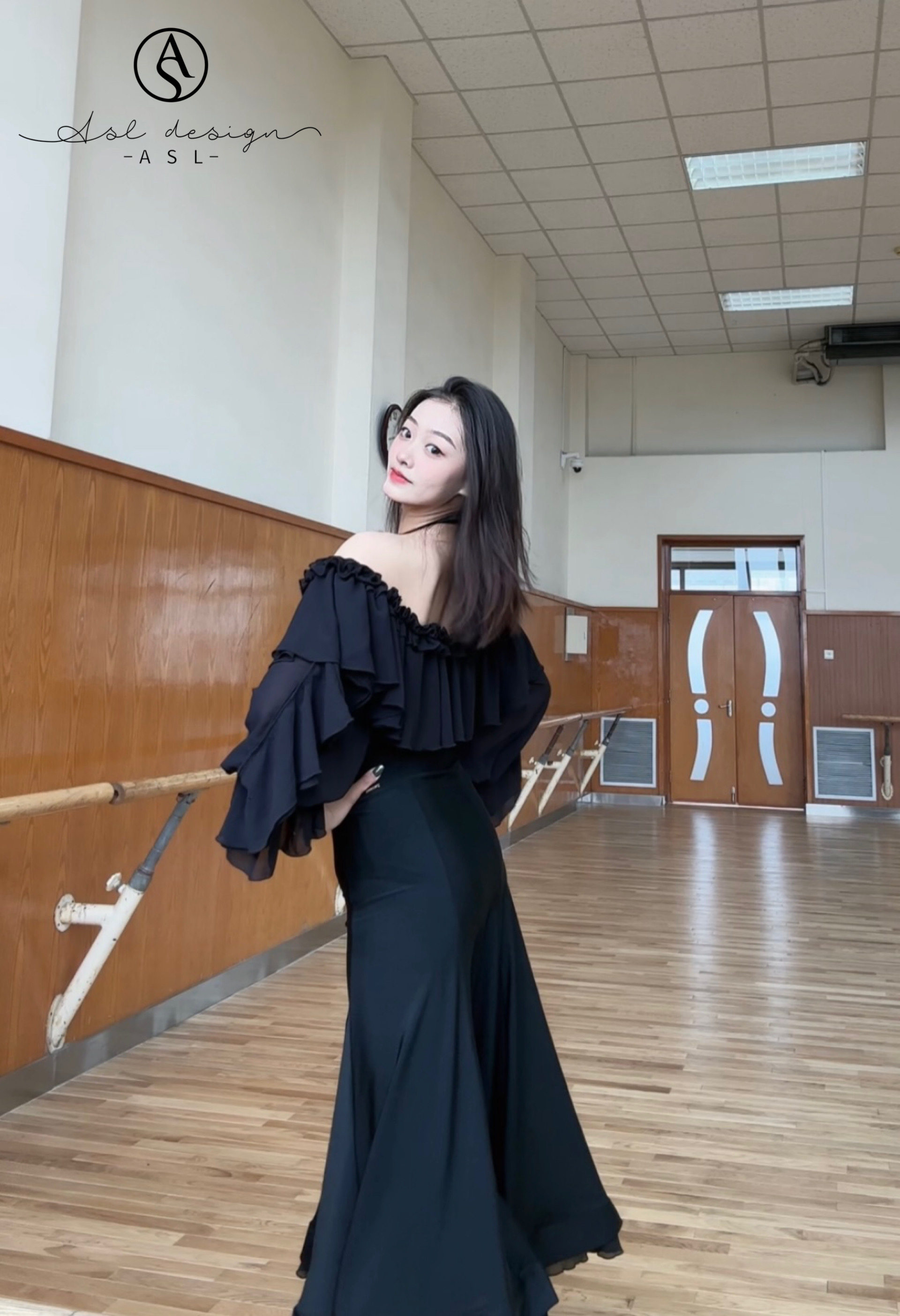 ASL Практика для тренировок, мегафон, лонгслив, длинная юбка, с акцентом на бедрах