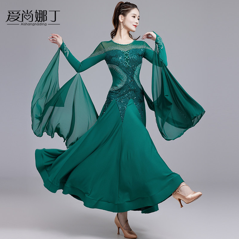 Платье для современного танца 2025, новый национальный стандарт, вальс, социальный танец, профессиональное соревнование, платье с блестками и лентой