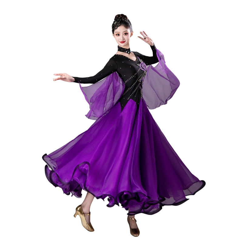 Новый инкрустированный бриллиантами трехмерный костюм для соревнований по вальсу с цветами, костюм для бальных танцев, платье для танцев ча-ча