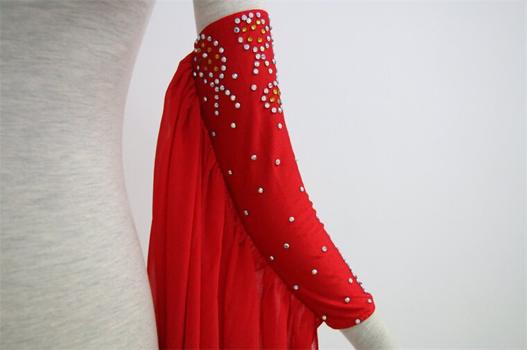 Розовая танца 99 Китай красный современный малифический танец вальц новый шифоновый прогро