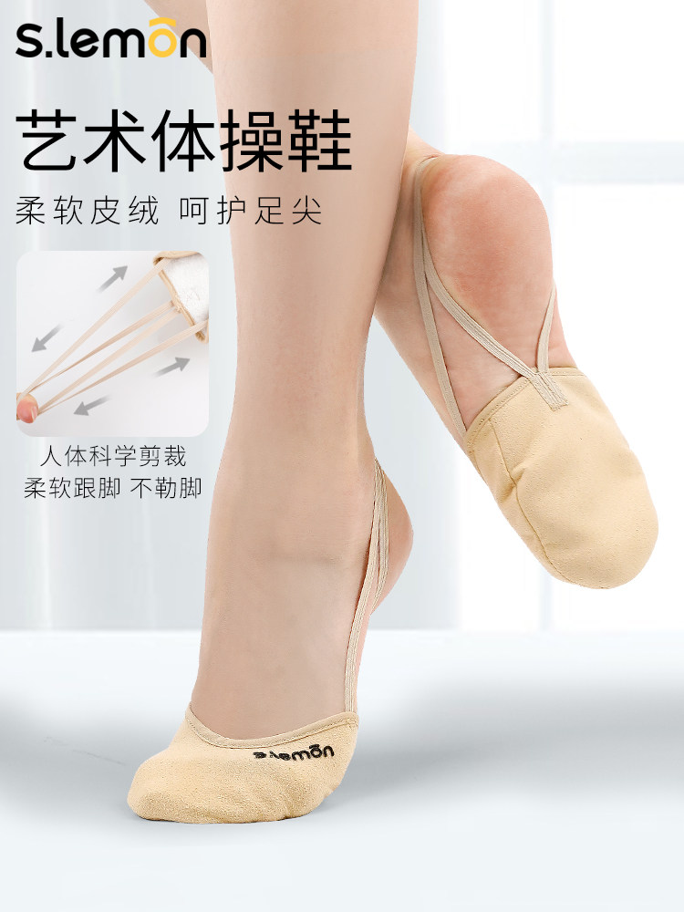 Профессиональная художественная гимнастика обувь для взрослых женщин наполовину ножных обувь детей замша с половиной крови танцы пуанты для девочек
