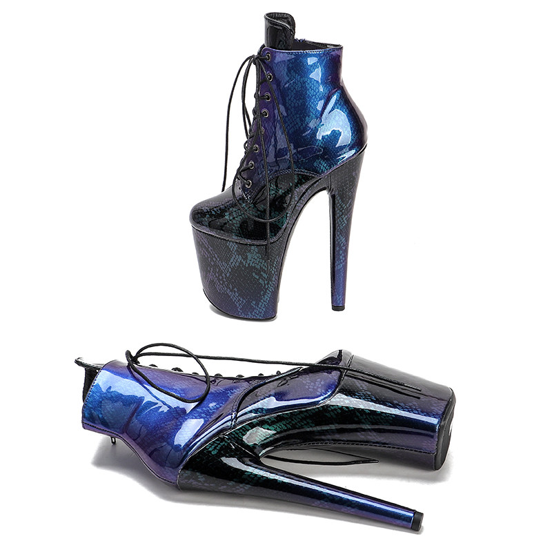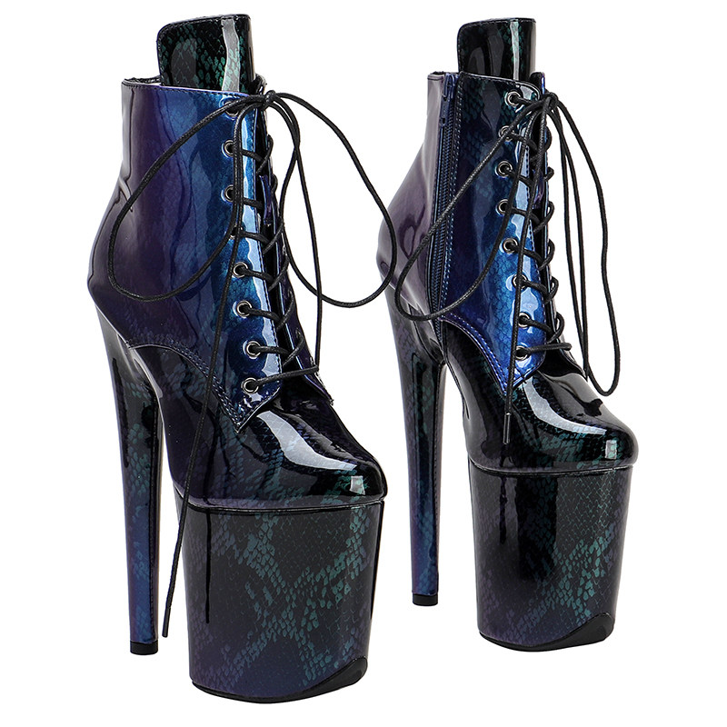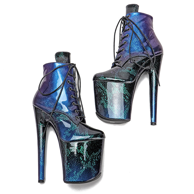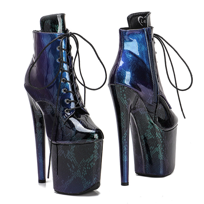 Leecabe European и American New Pu -Snake -Patterned Short Boots Model Nightclub High -Cheel Show Show Steel Pipe Dance Sexy Women's Shoes 2B