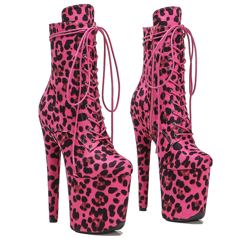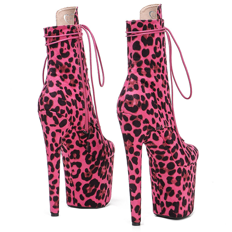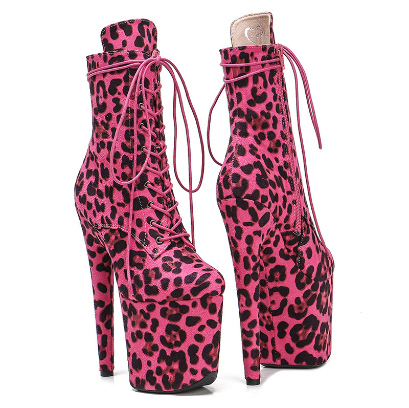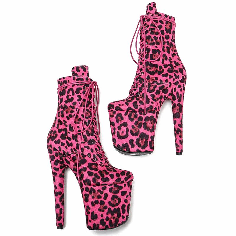 Leecabe Новые популярные леопардовые сапоги на каблуках европейские и американские стальные танцоры Трусители с высокой сценой подиум -шоу высокие каблуки 3b
