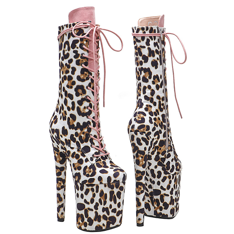 Leecabe Winter Leopard Ladies Женские Ультра -Ультра -Хелс Китайские сапоги Европейские и американские ветры переоткрыты 20 см. Сексуальные высокие сапоги 4B