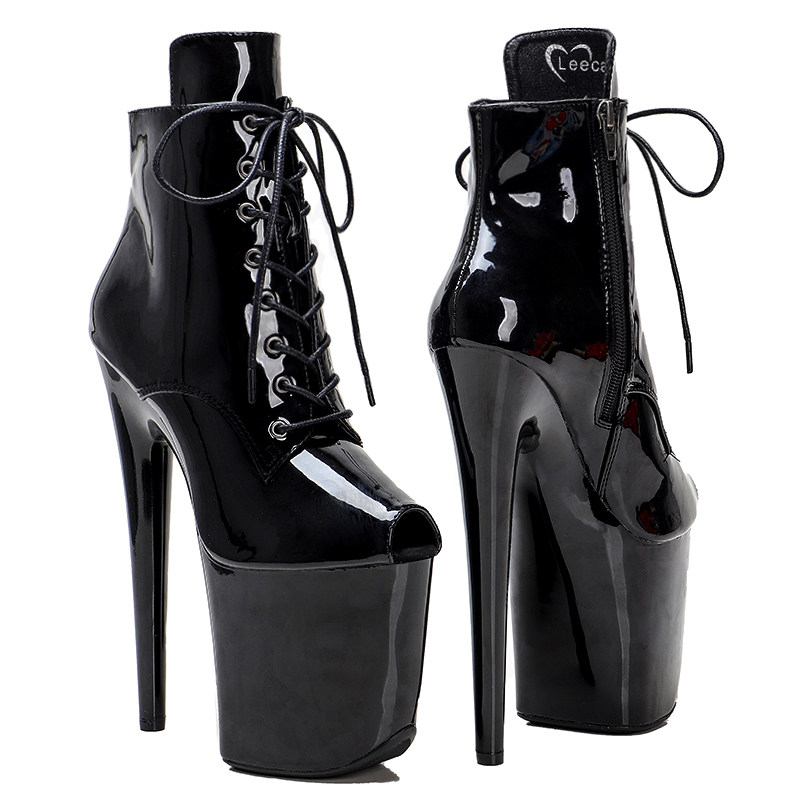 Leecabe Patent Leather Новая краска с высокой короткими сапогами стальная труба танце
