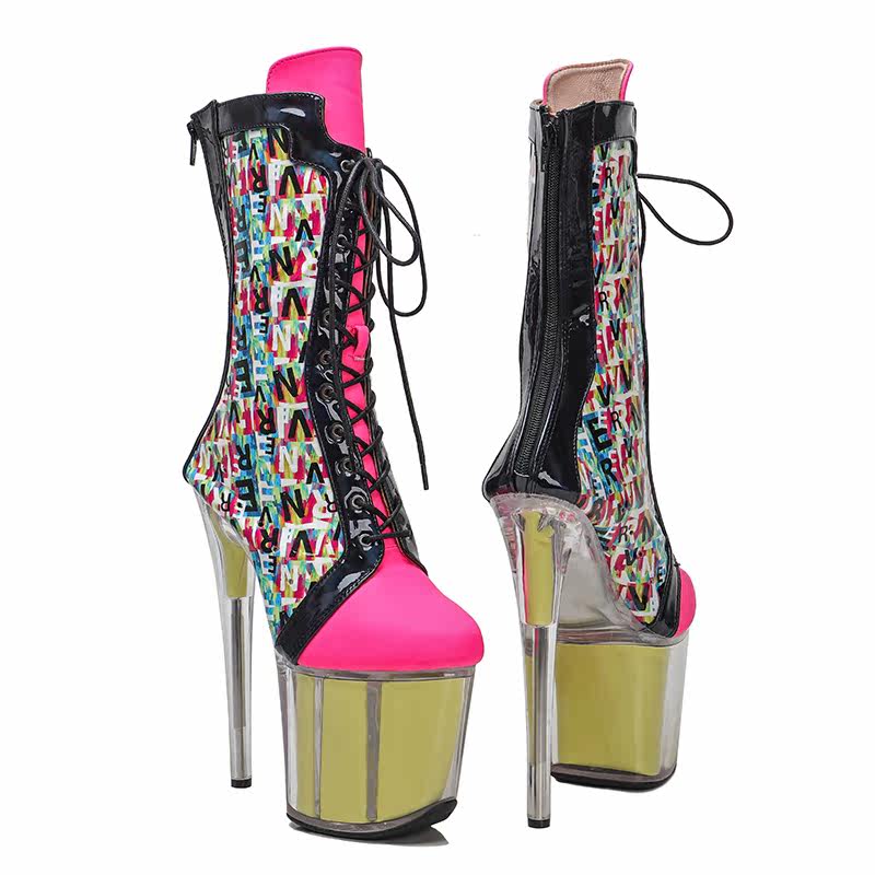 Leecabe/Новые модные сапоги средней длины на очень высоком каблуке, европейские и американские сапоги для танцев на пилоне, сексуальные сапоги на высоком каблуке в тон, 4L