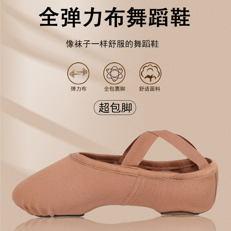 Танцевальная обувь из полностью эластичной ткани для женщин, тренировочная обувь на мягкой подошве, танцевальная обувь с эластичным боди, танцевальная обувь для студентов для экзаменов, женская нескользящая обувь