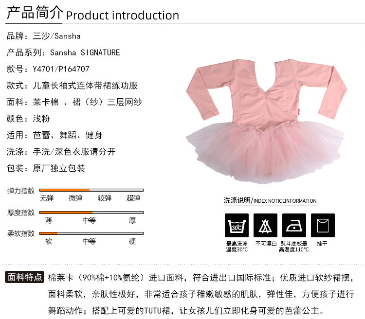 Особенности ткани:Импортные ткани Mianleca (90%хлопка+10% -спандекс) соответствуют международным стандартам импорта и экспорта; , удобно для детей, чтобы сделать танцевальные движения;