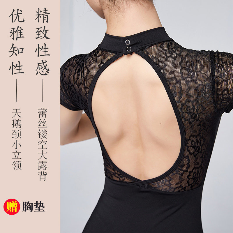 Черная кружевная спортивная одежда, одежда для гимнастики для йоги, с открытой спиной