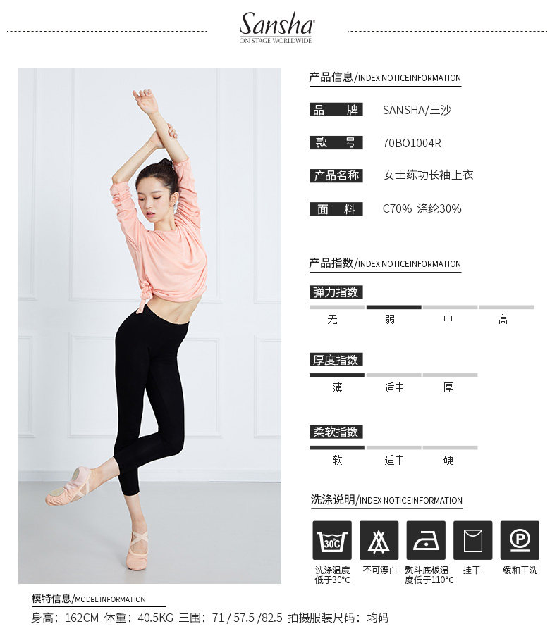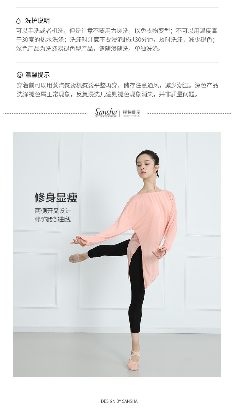 Sansha French Sanzha Ballet Dance Services Service Сервер тренировок с длинным рукавом Top Batt